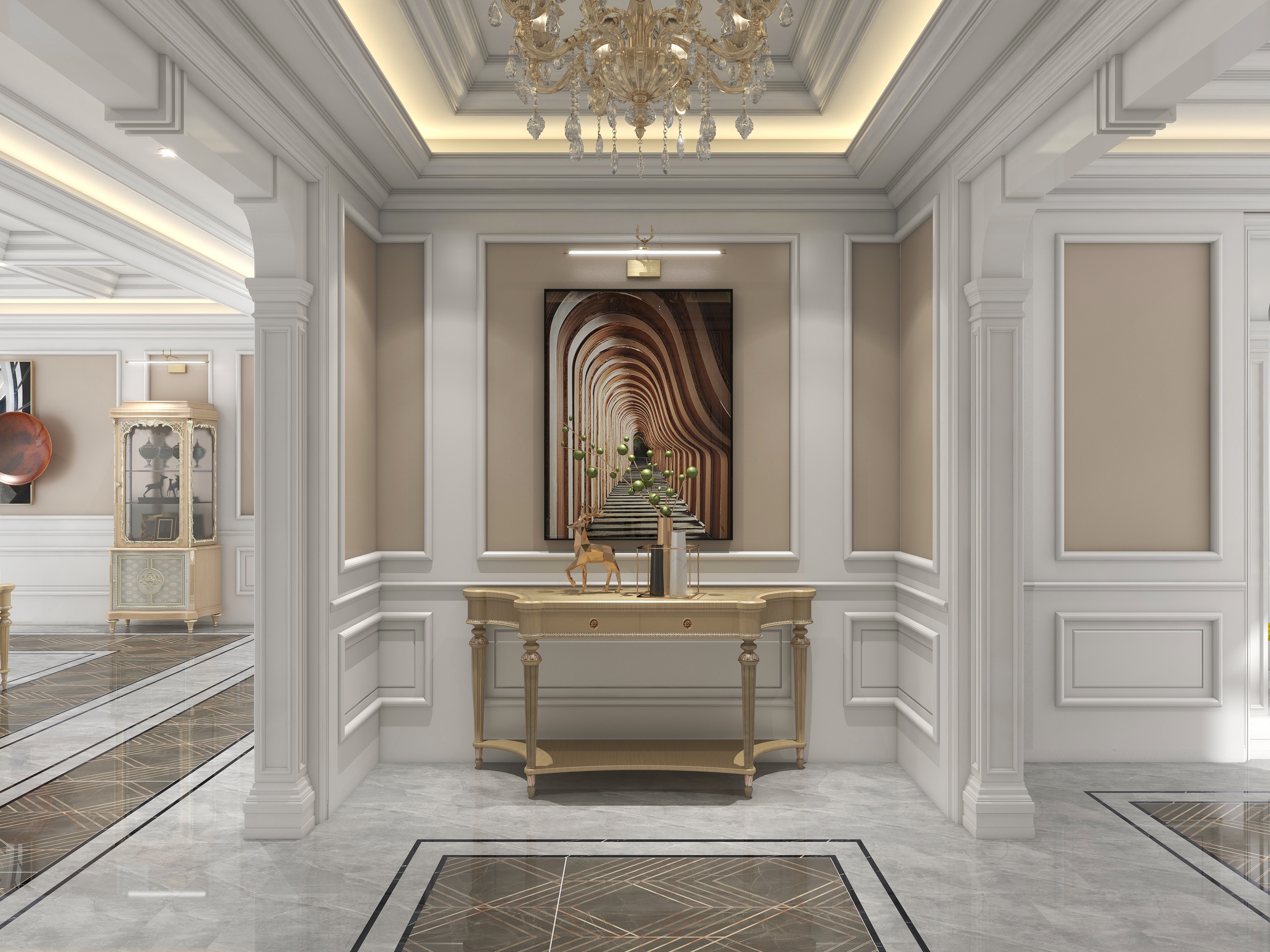 描述:本案的簡約美式風格,擯棄所有的繁瑣,以簡為主,將舒適清雅的氛圍裝進簡潔利落的空間,打造出一個通透明凈、清新雅致的現代空間。整個空間以暖色與冷色為基調,讓人倍感舒適溫馨,搭配淺色沙發,在良好的采光下營造出透亮潔凈的視覺感受。而在空間處理上,采用開放式處理,減少空間壓抑感,同時加以愛馬仕橙作為細致的點綴,賦予空間一抹藝術氣息。