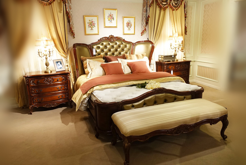 讀懂富豪崇尚尊貴品位、舒適體驗(yàn)的生活追求,從法國金碧輝煌的凡爾賽宮捕捉宮廷家具的設(shè)計(jì)靈感,用細(xì)膩的實(shí)木鑲嵌及描金工藝打造豪宅應(yīng)有的奢華氣派。
