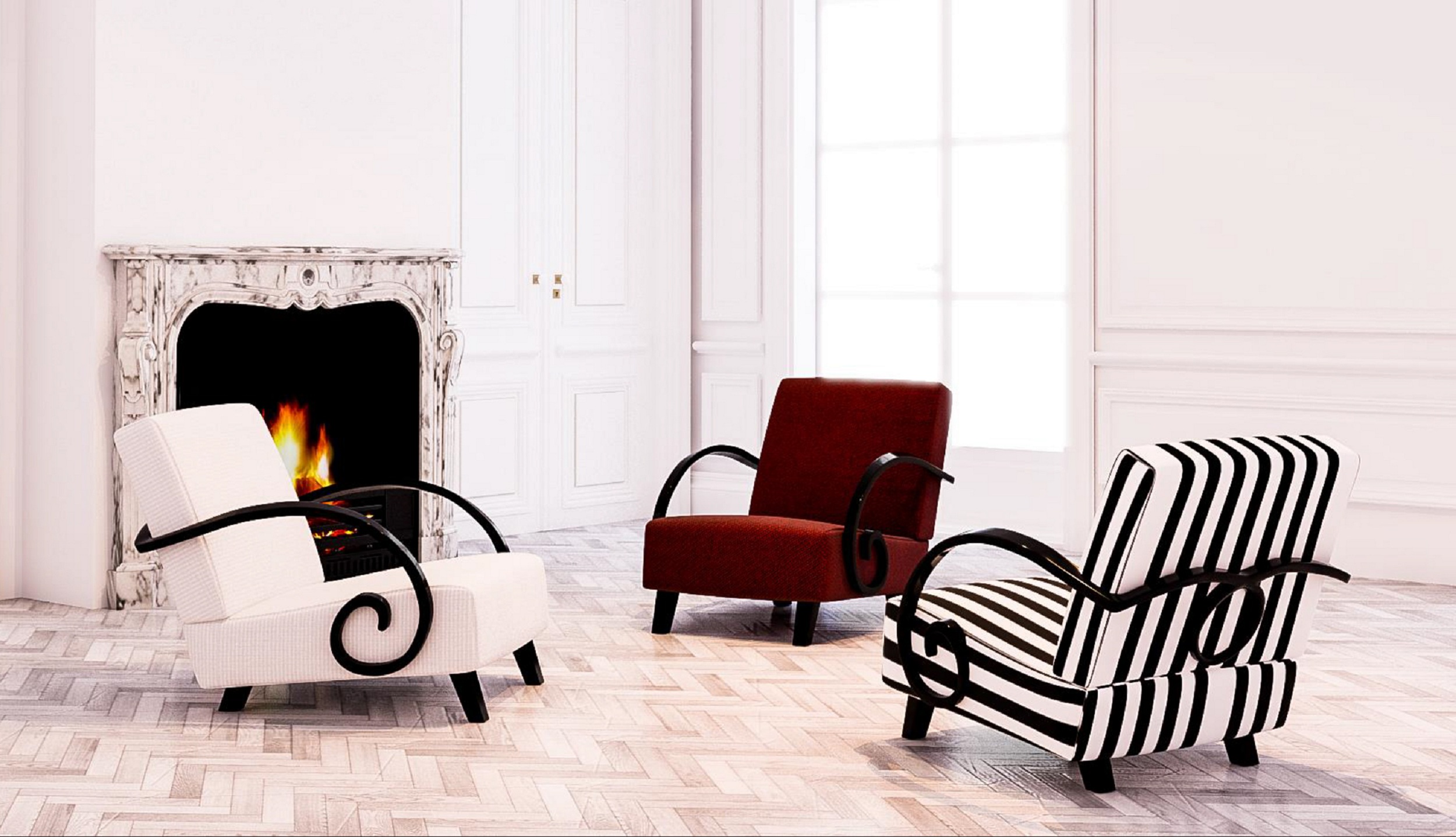 白色、酒紅或條紋,都適合現(xiàn)代或經(jīng)典的室內(nèi)設(shè)計。設(shè)計還原了1930年代的外觀,黑色的木質(zhì)扶手打造出弧形線條,給人一種女性化和別致的感覺。