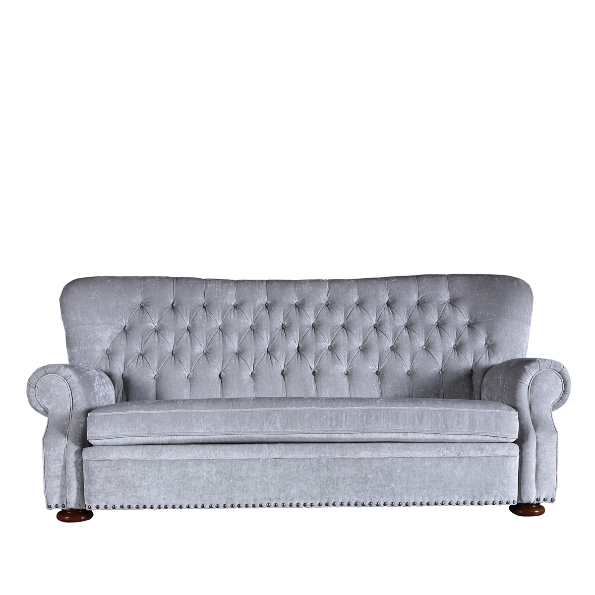 * 以法式經典的Wingback Chair(翼狀靠背扶手椅)為設計意念,以優美的拉扣造型與摩登的仿古銅釘為點綴裝飾,配上質樸的色調、寬大的尺寸與厚實的填充物,讓這款沙發兼具藝術審美與舒適功能;