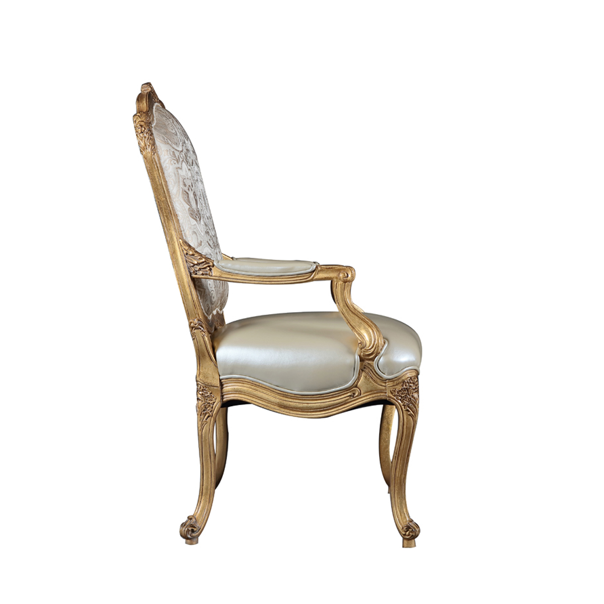 參考18世紀法國路易十五時期經(jīng)典的法式 Bergère 椅設(shè)計 ﹣多以婀娜的 Camelback Silhouette(駝峰輪廓)和外露的木框架表達;并配上細致的卷葉雕刻工藝、觸感舒適的布藝、法式經(jīng)典彎腳和金箔描金工藝,釋放法式浪漫情懷。