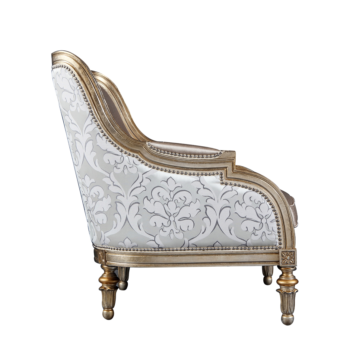 復古而有時尚感的香檳金涂裝,喚醒輕奢時尚;井然有序的雕刻,栩栩如生的花紋裝飾,使它不論從任何角度欣賞,都愈加美不勝收。含苞待放的鈴蘭花雕刻椅腳增添知性的魅力,綻放氣質光彩。