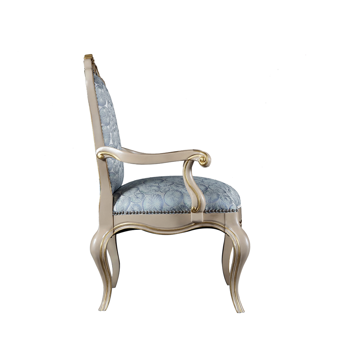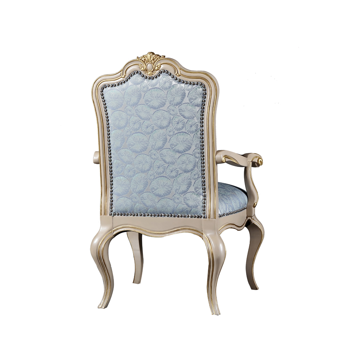 優(yōu)雅的琴背造型,茛苕紋描金雕刻,經(jīng)典的法式“S”型彎腿,如天鵝頎長(zhǎng)的脖頸一樣優(yōu)美曼麗,時(shí)尚鉚釘裝飾為休閑椅氣質(zhì)加持,將輕奢注入人文細(xì)節(jié)。