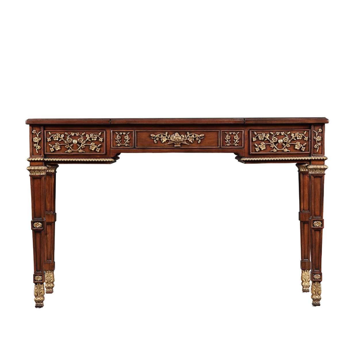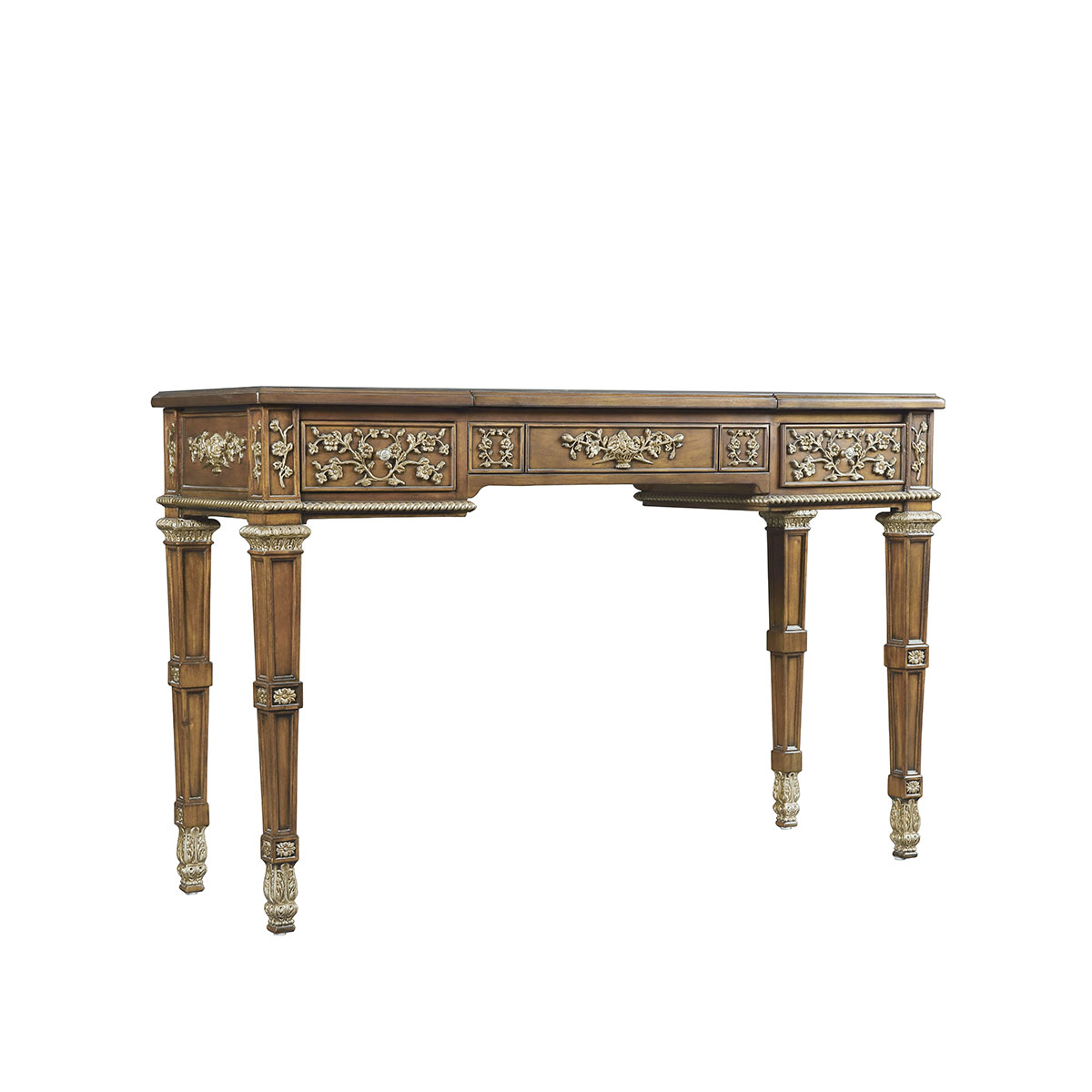 花草雕刻是安妮女王的園藝寫照,羅馬凹槽柱雕刻、貼金工藝都是匠心打造。貼仿金箔的璀璨光澤帶著決策者的尊貴威嚴,在細節處的精致彰顯生活的品質。