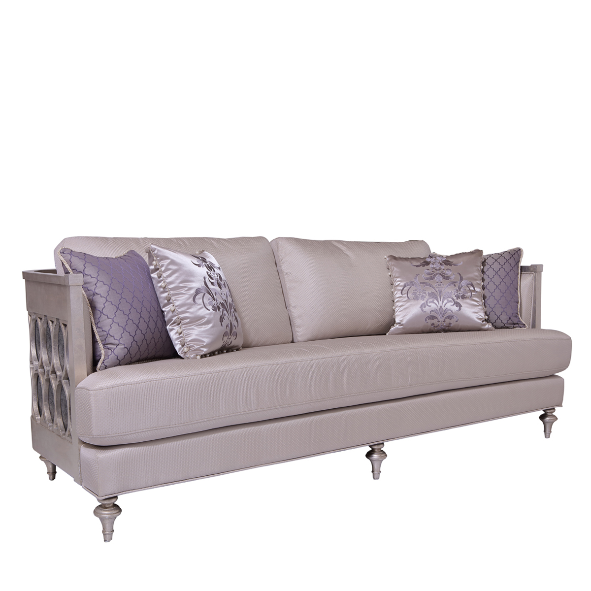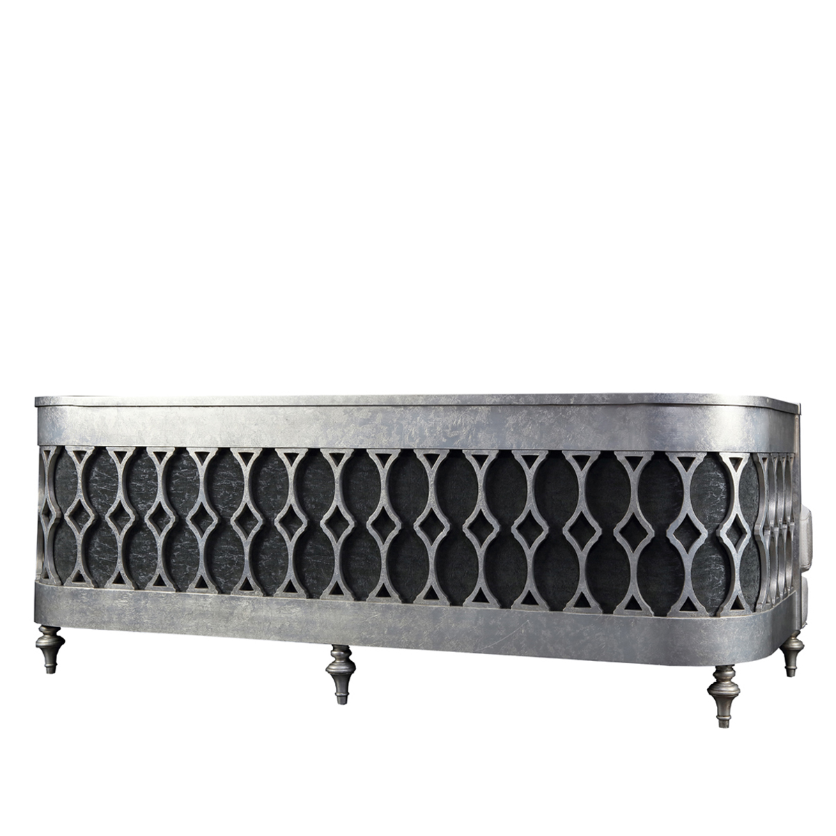 低靠背的沙發設計,為陽光留足了空間;仿古銀涂裝,從容之中難掩氣質的流露。鏤空工藝勾勒出輕盈修長的線條,在弧形流暢的沙發造型中演繹出變幻之美。
