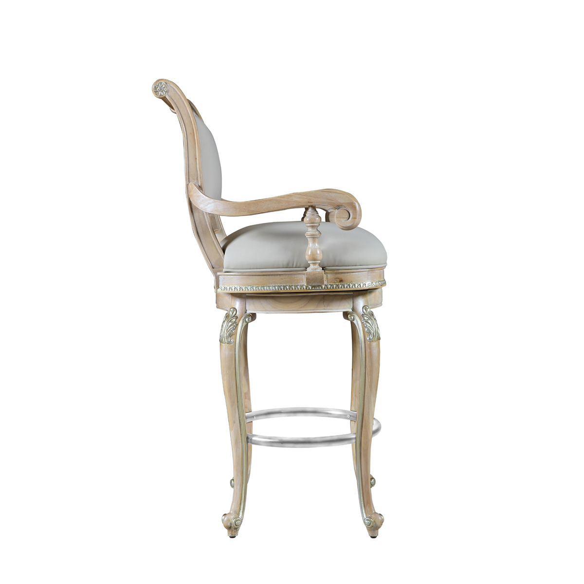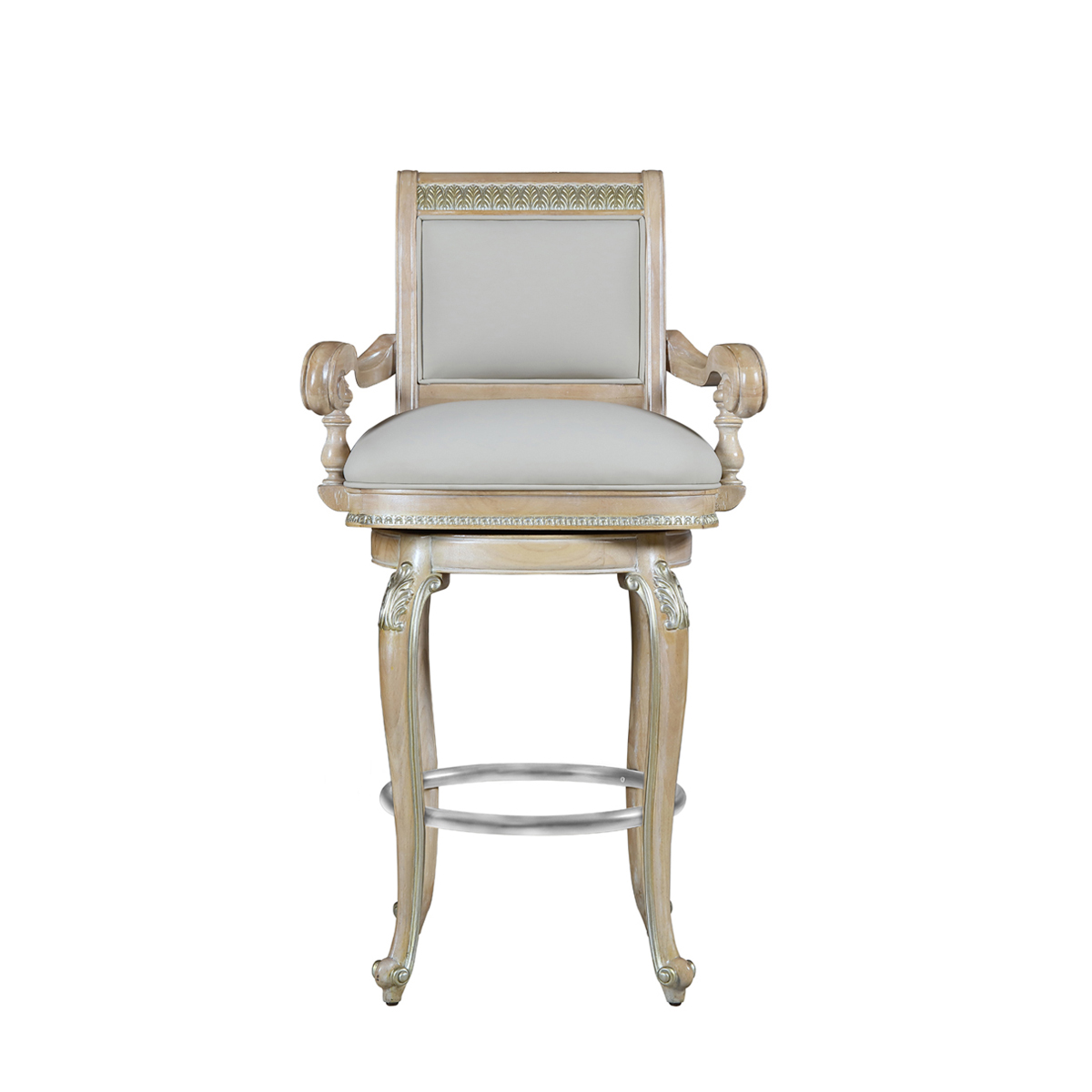細(xì)膩的葡萄葉雕刻飾以描金工藝,是從意大利傳承千年的葡萄酒文化中汲取的設(shè)計靈感;旋渦狀的羊角扶手結(jié) 合優(yōu)雅高挑的彎腿,凸顯了華麗熱情的意大利風(fēng)情;古董白框架搭配淺灰布藝彰顯意式的至臻至美。