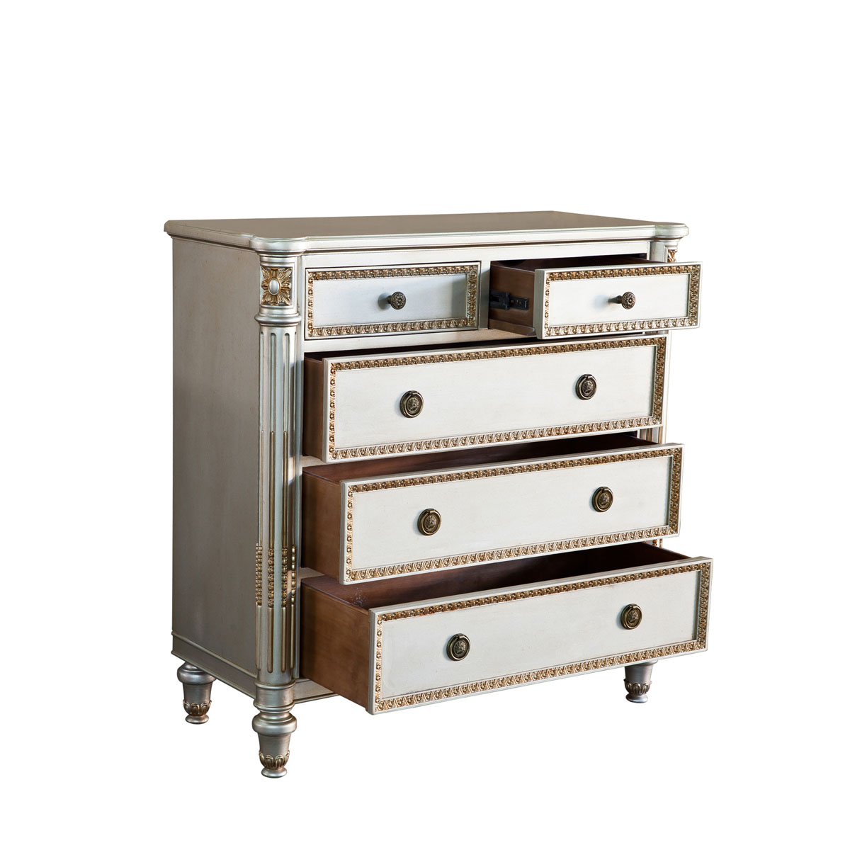 * 手工雕刻的工藝細(xì) * 有四個(gè)儲(chǔ)物抽斗,而在其底部采用英式經(jīng)典硬木實(shí)木滑軌設(shè)計(jì);一個(gè)翻斗的斗面可翻開,可在內(nèi)放置播放器等電子器材
