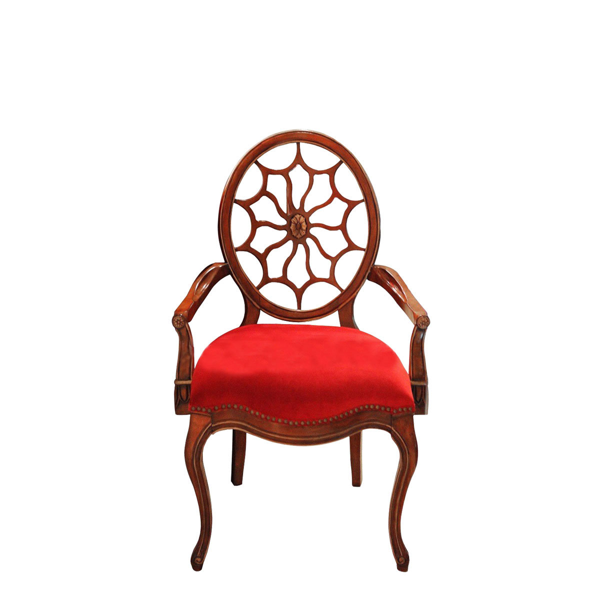 * 參考喬治三世時期的古董造型設計,使用輪子構造椅背和安妮王后腿,配以精致的手工雕刻細節和涂金工藝、浪漫的花形布藝面料和厚實柔軟的填充物,是豪華系列凡爾賽玫瑰法式單椅的特色。