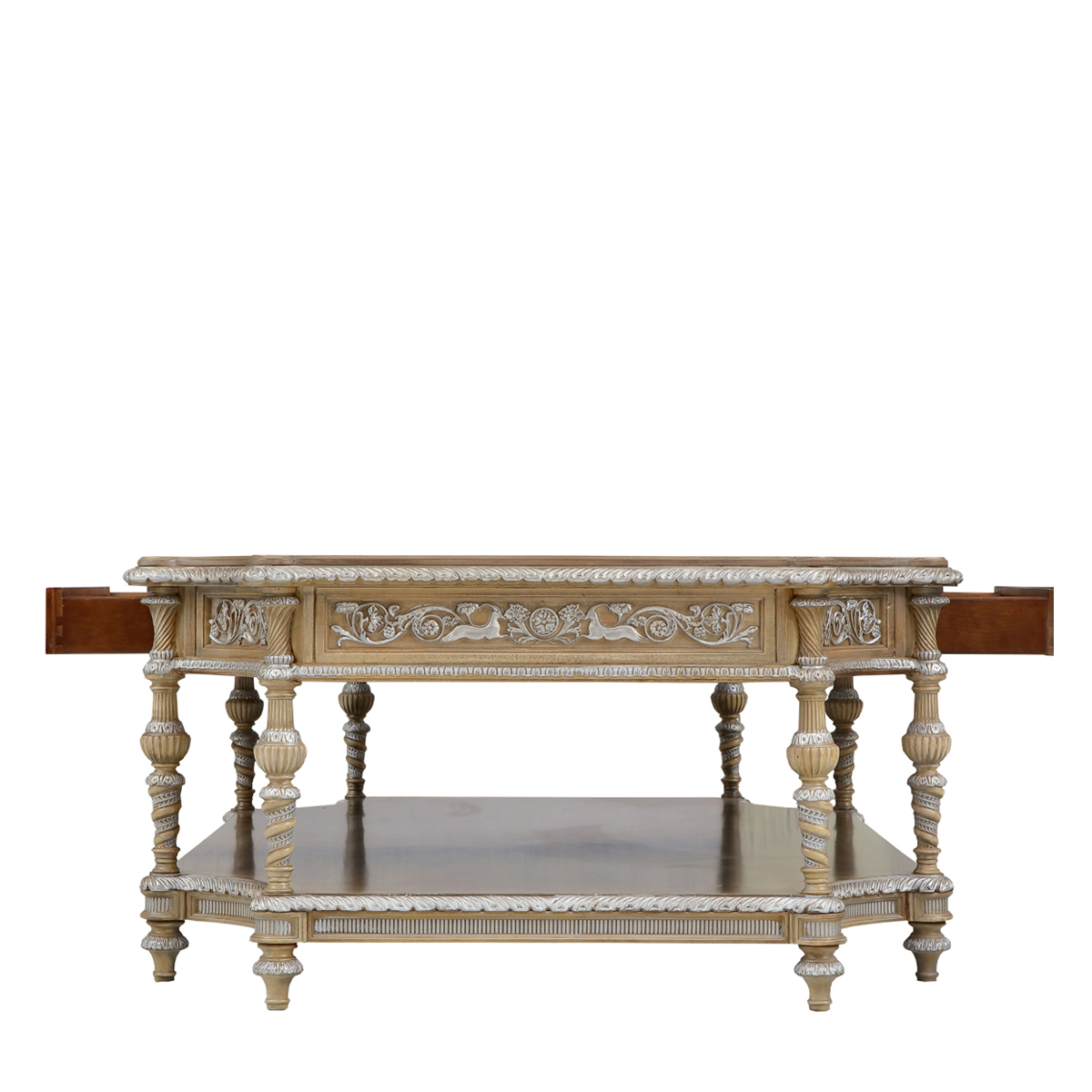 * 手工木皮拼貼工藝結實的連接技術18道以上的多步驟油漆工藝; * 四個儲物抽斗,底部采用實木硬木滑軌; * 底部裝有可調整腳釘;