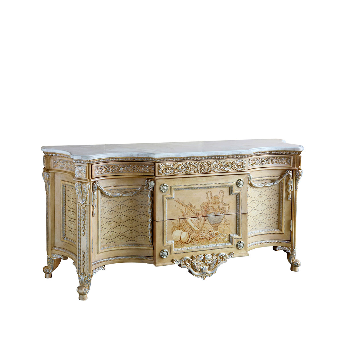 * 手工雕刻的工藝細(xì)節(jié) * 結(jié)實(shí)的連接技術(shù) * 光滑的花崗巖石表面 * 分別有四個(gè)儲(chǔ)物抽斗,而在其底部采用經(jīng)典硬木實(shí)木滑軌設(shè)計(jì) * 由于雕刻和彩繪是由專業(yè)工藝師純手工精制而成,所以每一件產(chǎn)品都成為獨(dú)一無(wú)二的藝術(shù)品