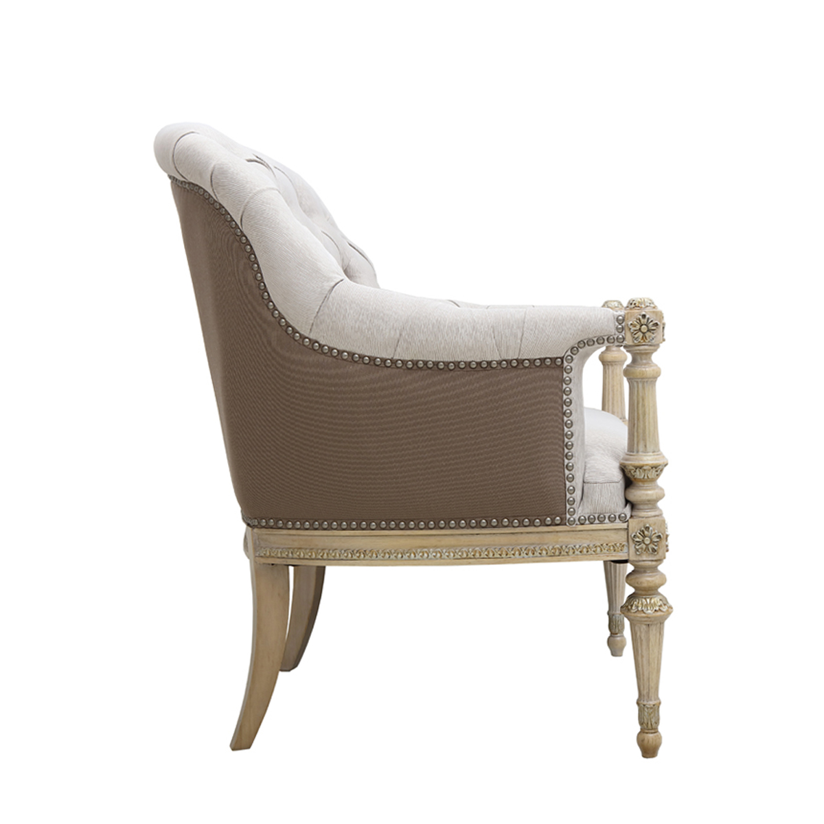 * 細致的拉扣工藝; * 椅背前后方及坐墊包有豐厚的填充物; * 底部裝有可調腳釘;