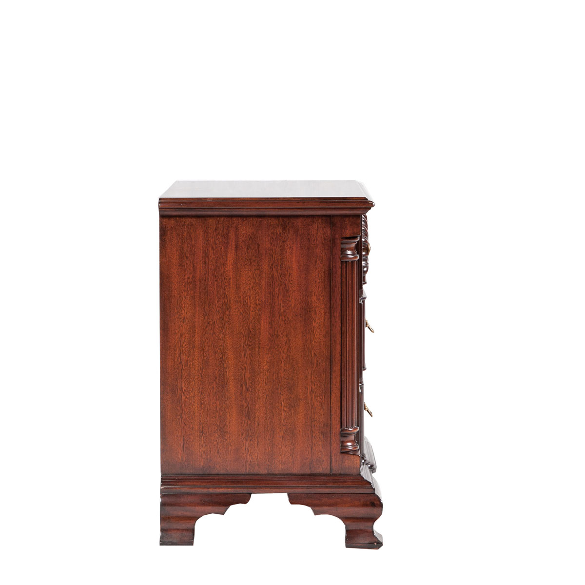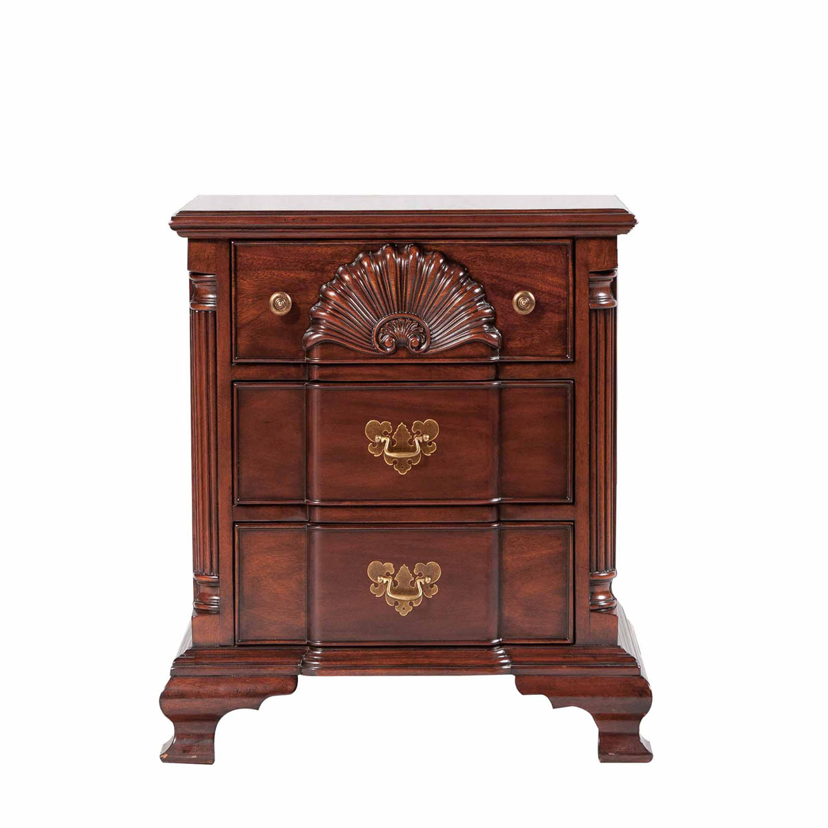 *以18世紀(jì)著名設(shè)計(jì)師 John Townsend(約翰.湯森)在70年代制造的邊柜為原形,重現(xiàn)其當(dāng)時(shí)的輝煌。其設(shè)計(jì)元素,如象征幸運(yùn)女神的貝殼形雕刻,建筑柱元素造型和蝴蝶形的黃銅拉手,充分表現(xiàn)了美國(guó)果敢堅(jiān)毅的開拓精神與多元融合的美式家具特色。