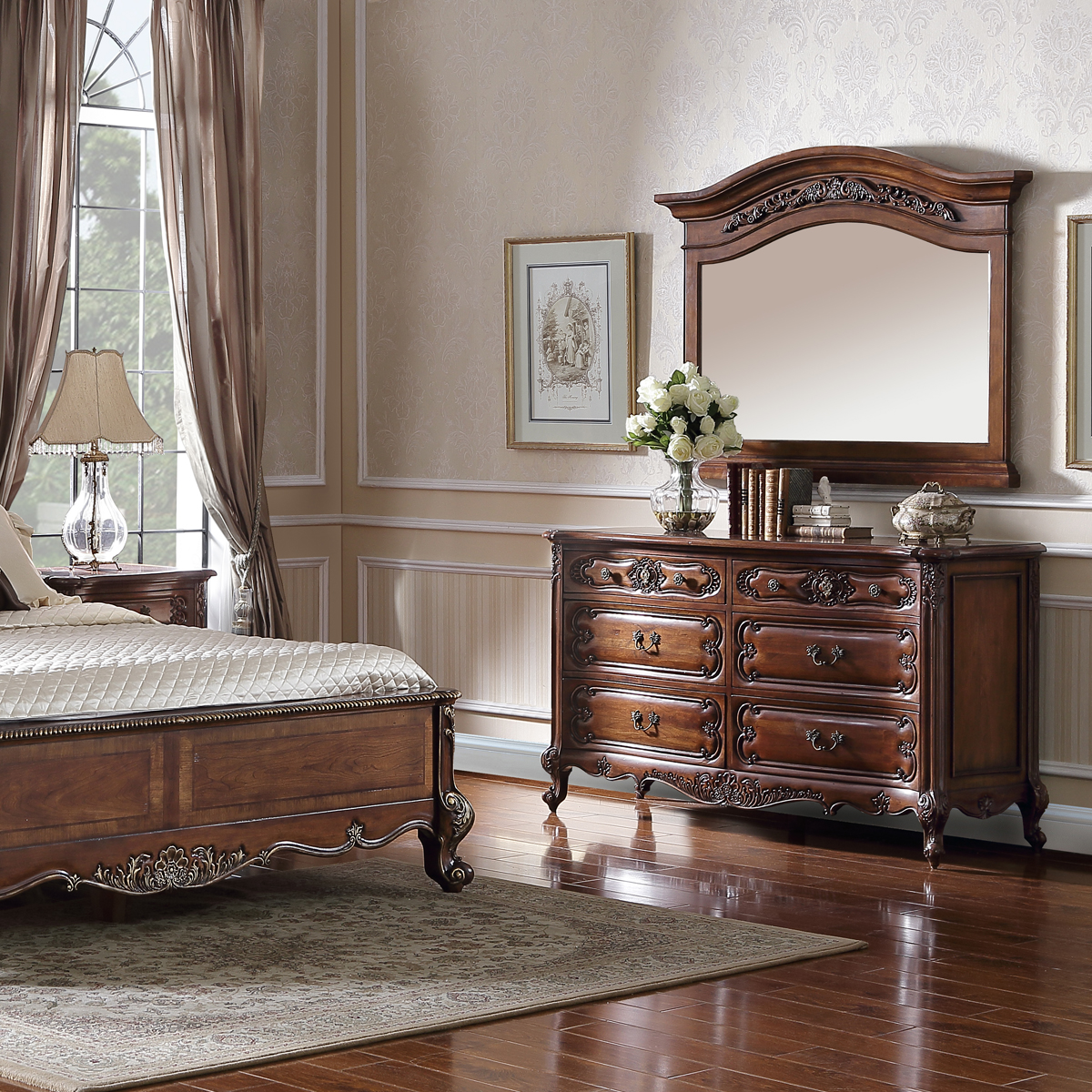 * 浪漫的香頌猶如歷史悠久的杜樂(lè)麗花園般,每每散發(fā)著其獨(dú)特的韻味。為表現(xiàn)杜樂(lè)麗花園的休閑愜意,使用花環(huán)和卷葉造型的實(shí)木手工雕刻,配以獨(dú)特的拱頂設(shè)計(jì),是經(jīng)典系列香頌法式梳妝鏡的特色。