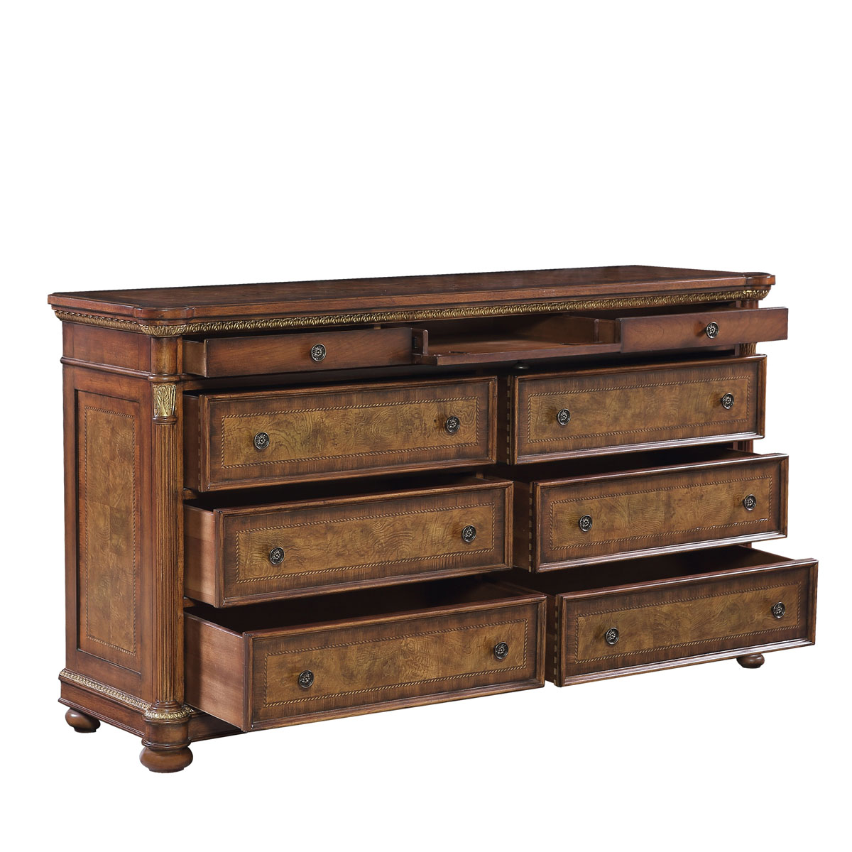 * 從17世紀意大利帝國EMPIRE風格中汲取靈感,結合意大利人重生活更懂藝術的品位追求,以羅馬的古建筑為元素,使用華麗莊嚴的 Corinthian Order(科林斯式)羅馬雕刻柱與描金工藝結合,配以阿坎賽斯葉狀雕刻與精美的木皮貼面,精彩展現了意式家具奢華絢麗而又極富藝術人文氣息的迷人魅力。