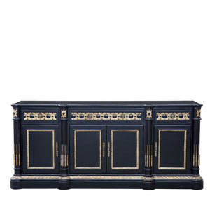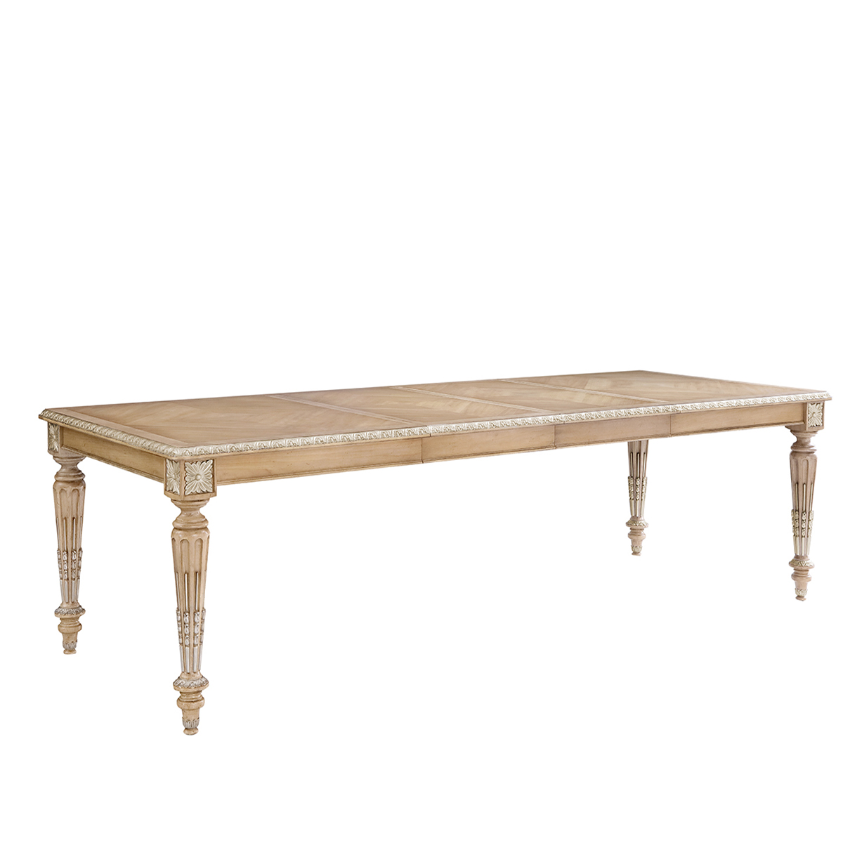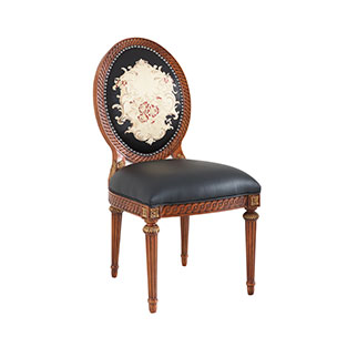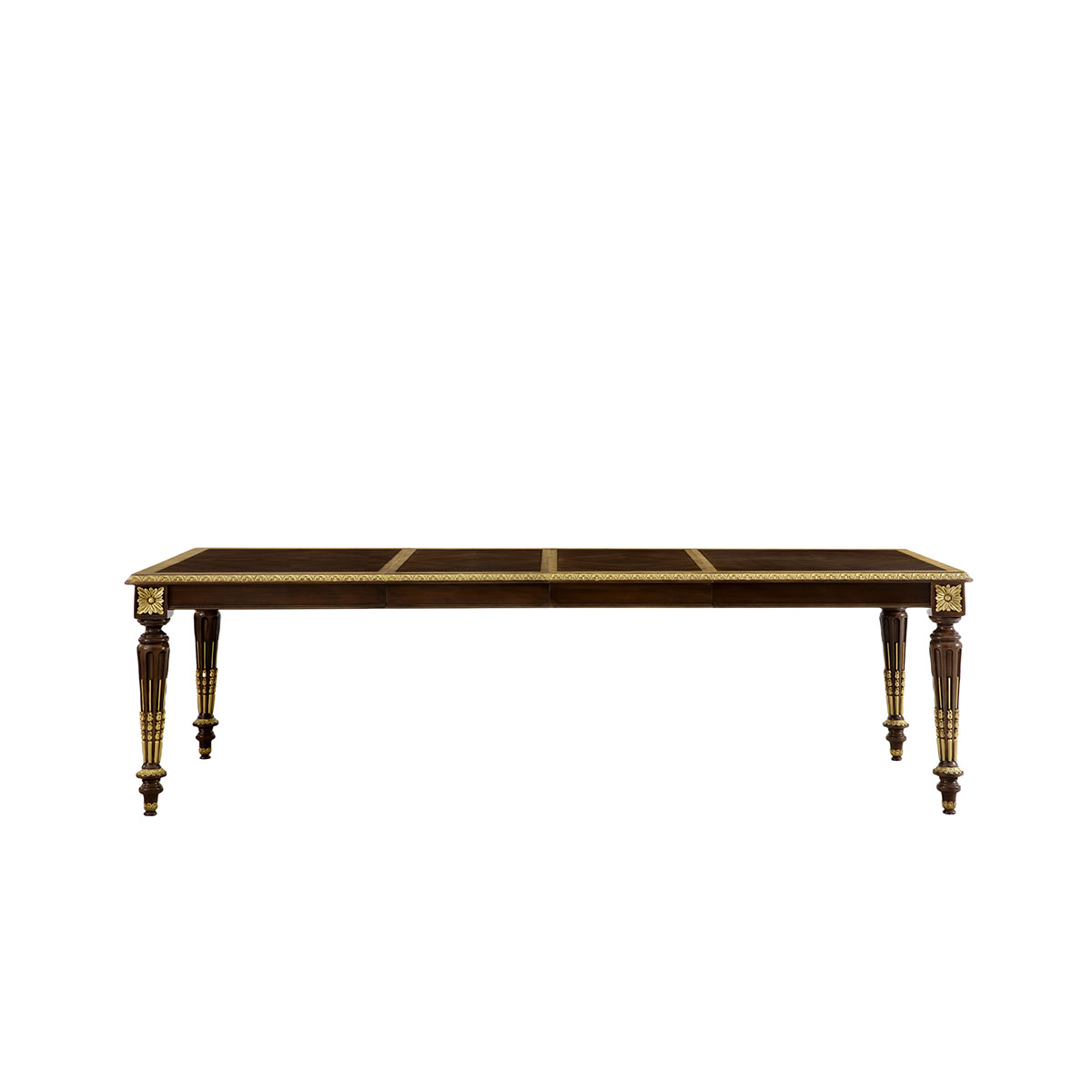 * 為表現法國路易時期的莊嚴和浪漫,以法國凡爾賽宮為設計元素。使用歌頌路易十四時期的太陽花雕刻,顯示其王權穩固地位的錐形腿腳設計;配以鉆石圖案木皮貼面、可調節的伸板設計和貼金工藝,完美演繹了法式宮廷家具的奢華尊貴。