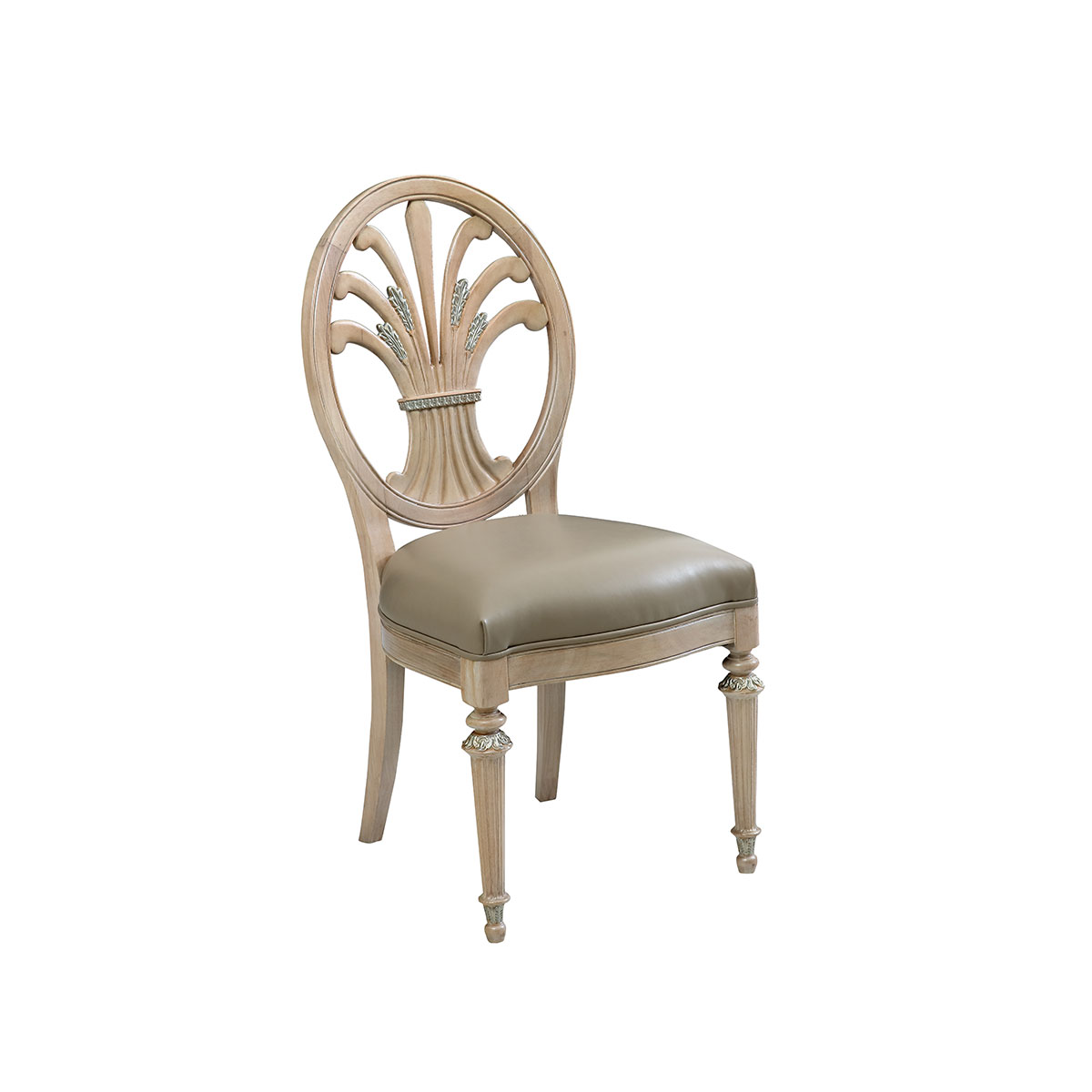 * 以意大利的宮廷家具和羅馬的古建筑為元素,使用錐形的腿腳設(shè)計、精致的手工雕刻細節(jié)和描金工藝結(jié)合,顯示王權(quán)的穩(wěn)固地位;配以對稱的棕櫚葉和麥穗雕刻裝飾椅背、色彩豐富的布藝面料和厚實柔軟的填充物是豪華系列翡冷翠 意式單椅的特色。