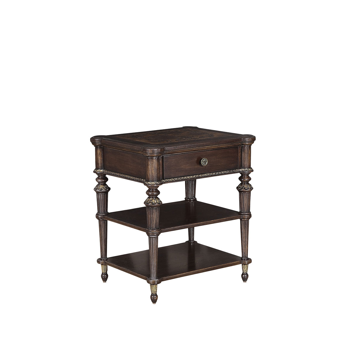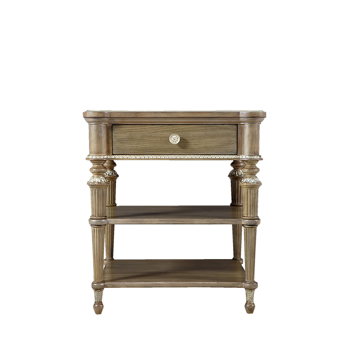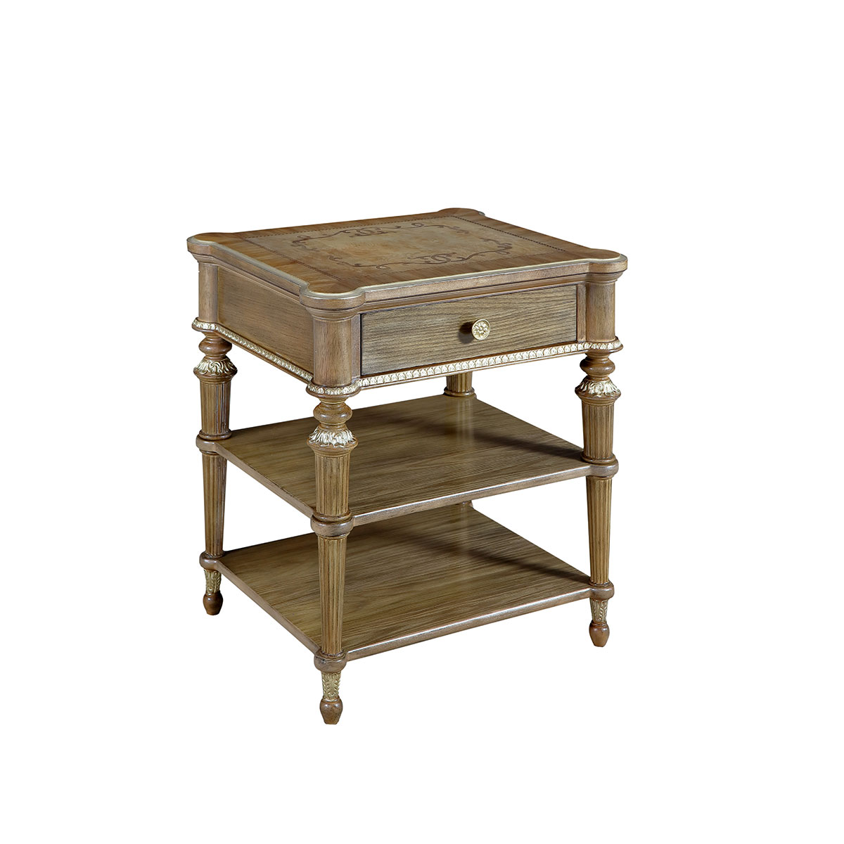 * 一個儲物抽斗,其底部采用經典硬木實木滑軌; * 上面為開空設計,可放便存取物品; * 腳部裝有可調整腳釘;