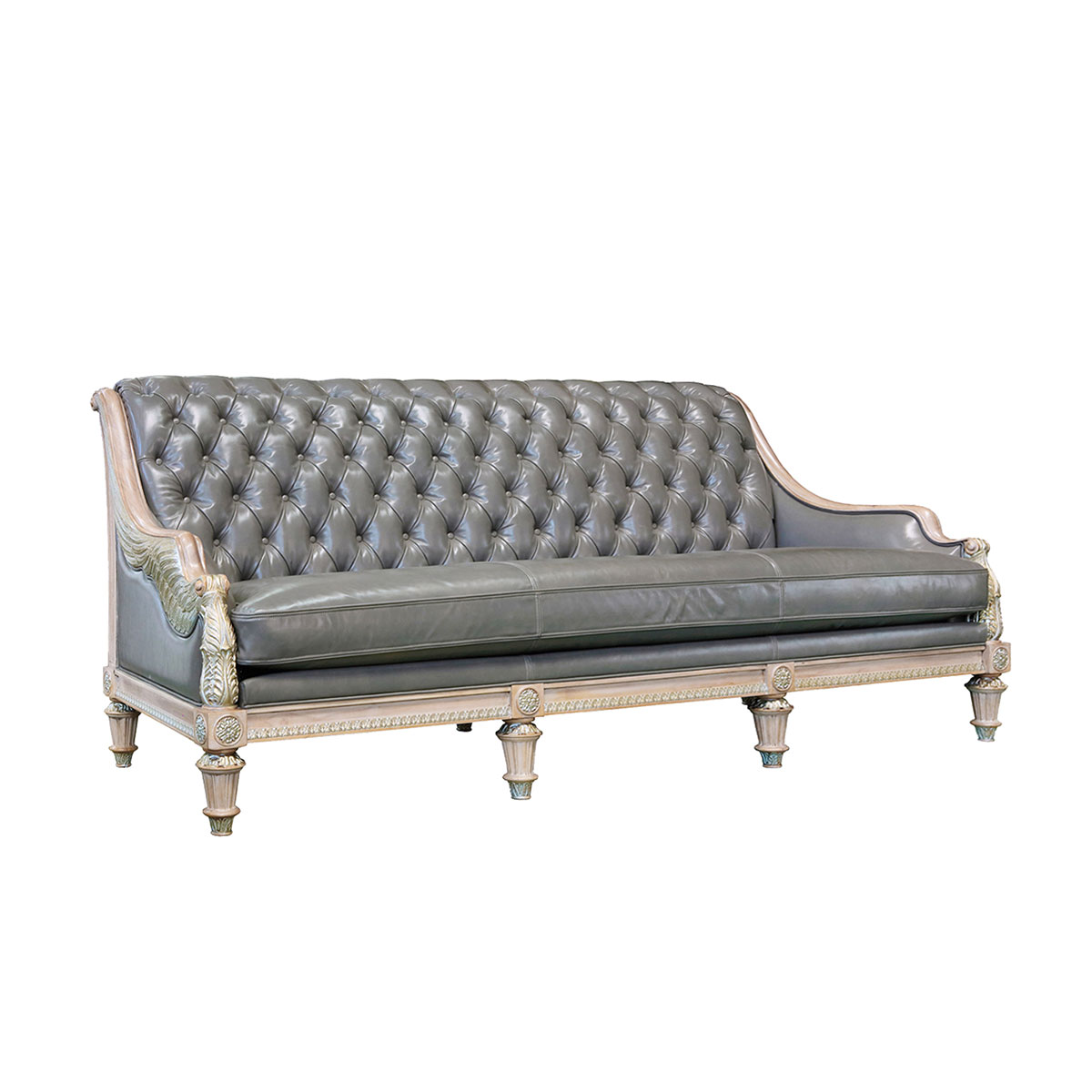 魅影灰邂逅灰褐色,皮質珍奢而不失大氣之姿;設計雕刻出勝利女神-Samothrace翅膀扶手,羽翼豐滿的羽毛雕刻極為精巧經典,援引古典常用的色彩,以簡飾繁;錯落有序的條紋回路蘊藏著達•芬奇的繪畫創作靈感,拉斐爾的建筑設計妙思以及米開朗基羅的雕塑精粹。