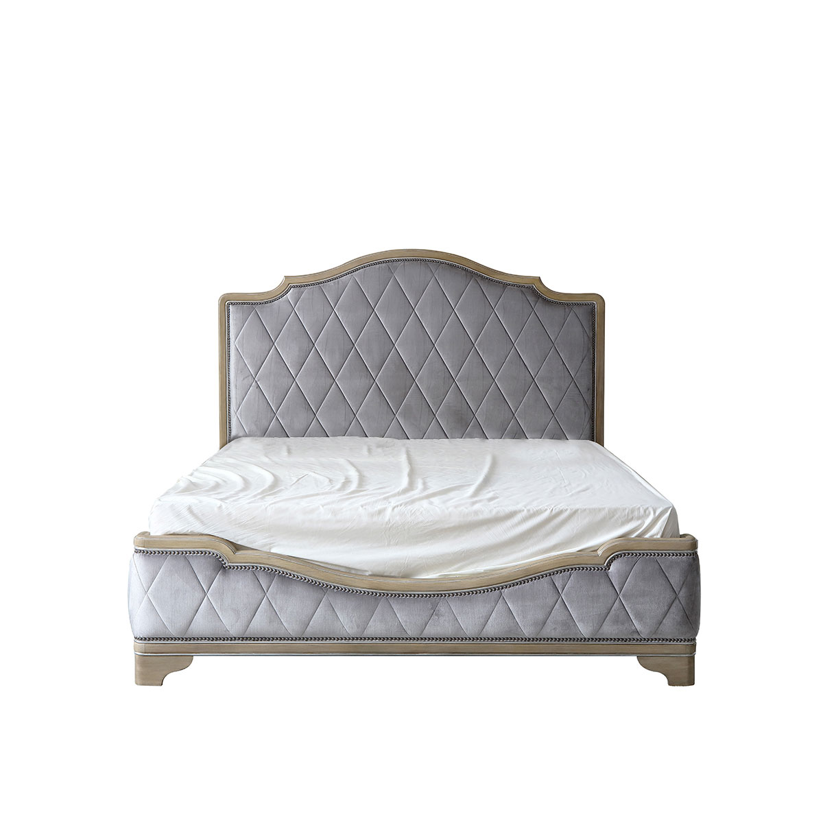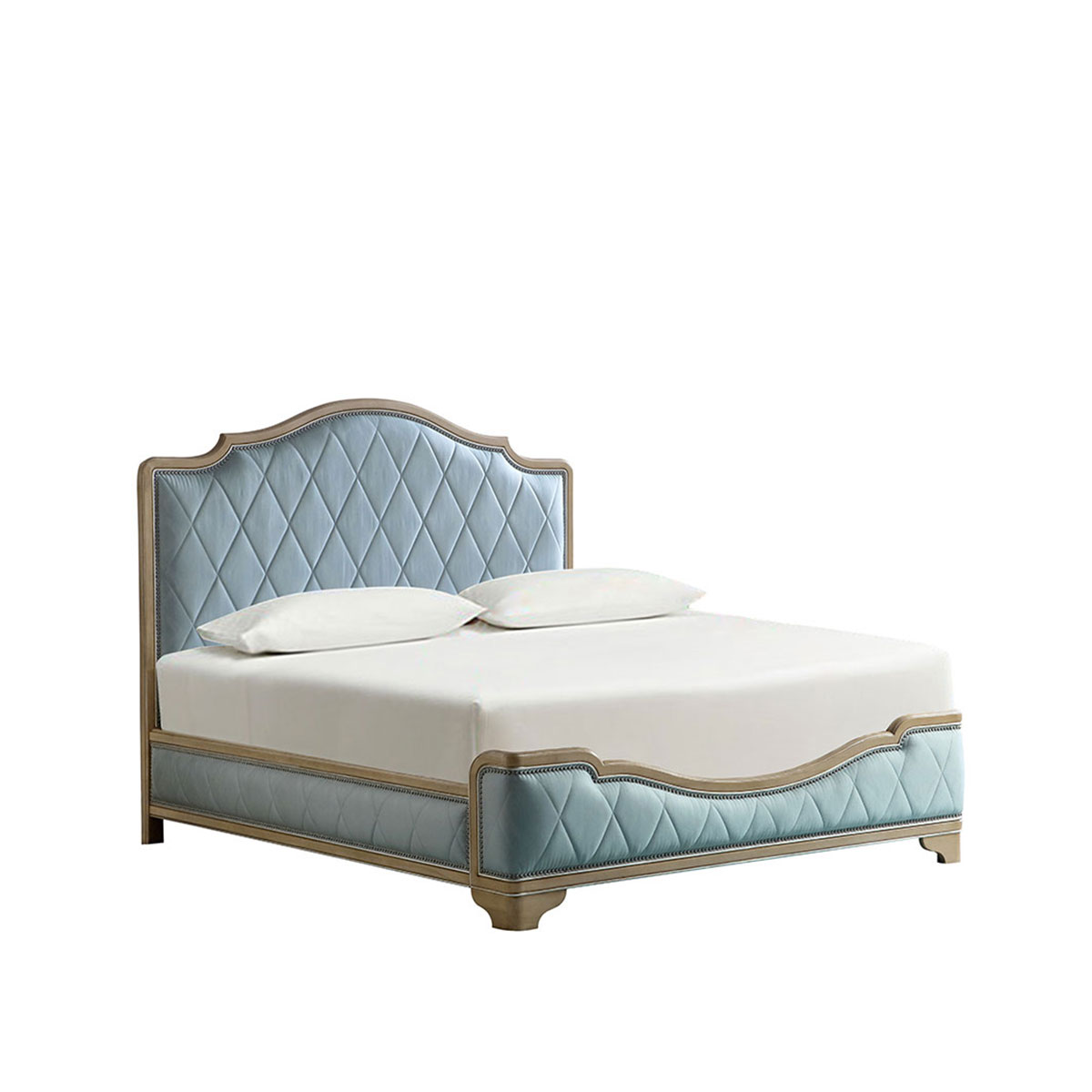 珍珠灰色獨有的光澤與色調,可以讓家具看起來歷久彌新,切割分明的菱形靠包倍顯理性主義;流行簡約的現代造型設計搭配帶仿古效果的色澤痕跡,緊密有序的仿古銅釘增強時尚氣息,注重細節美,充分彰顯了古典奢華與現代美學的結合。