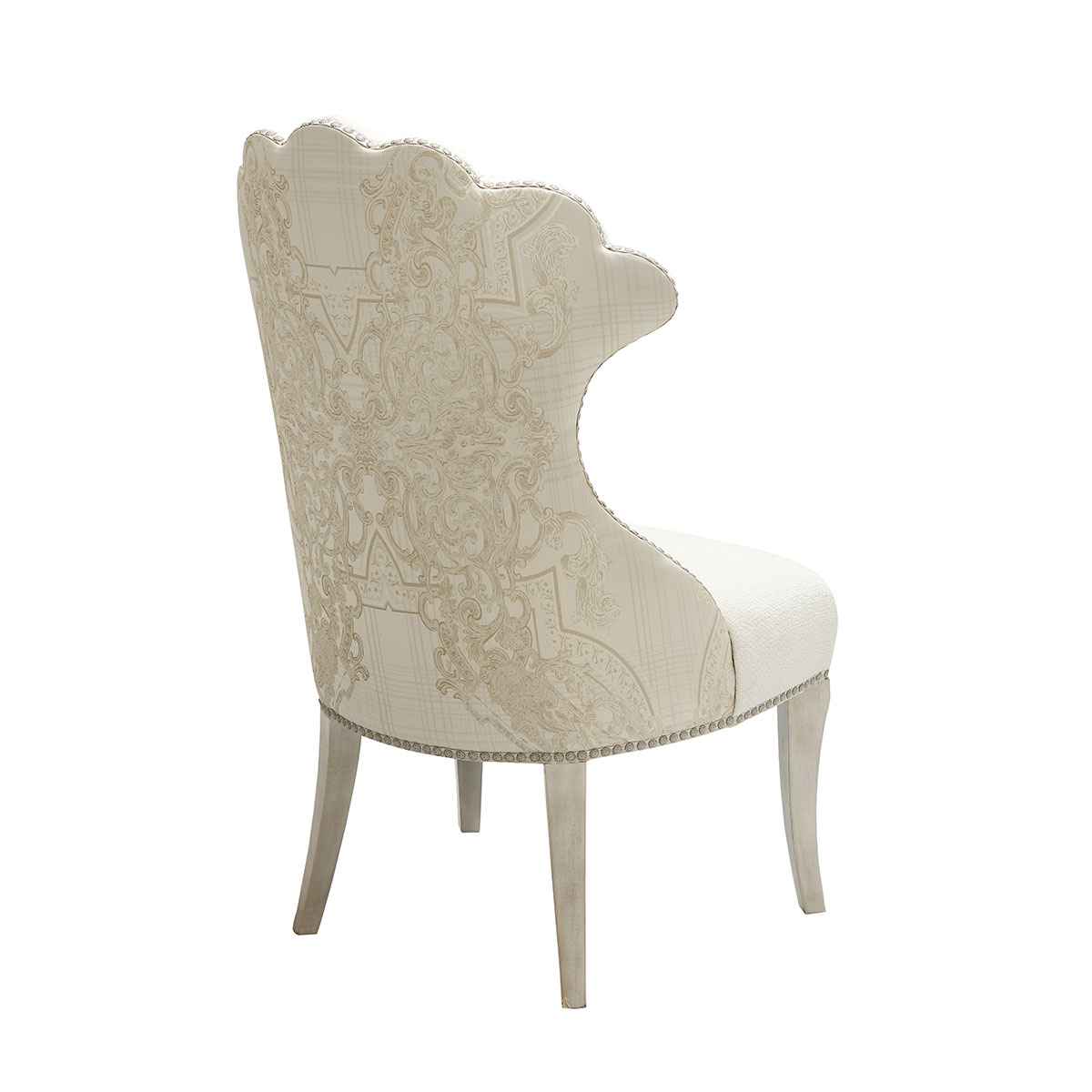 新古典主義去蕪存菁,貝殼狀的椅子富有東方女性的典雅美,造型開放而包容;錢貝圖騰元素,寓意財運源源。將洛可可風格中對自然的表達、動感的弧線和雕刻、貝殼等工藝運用得融會貫通。