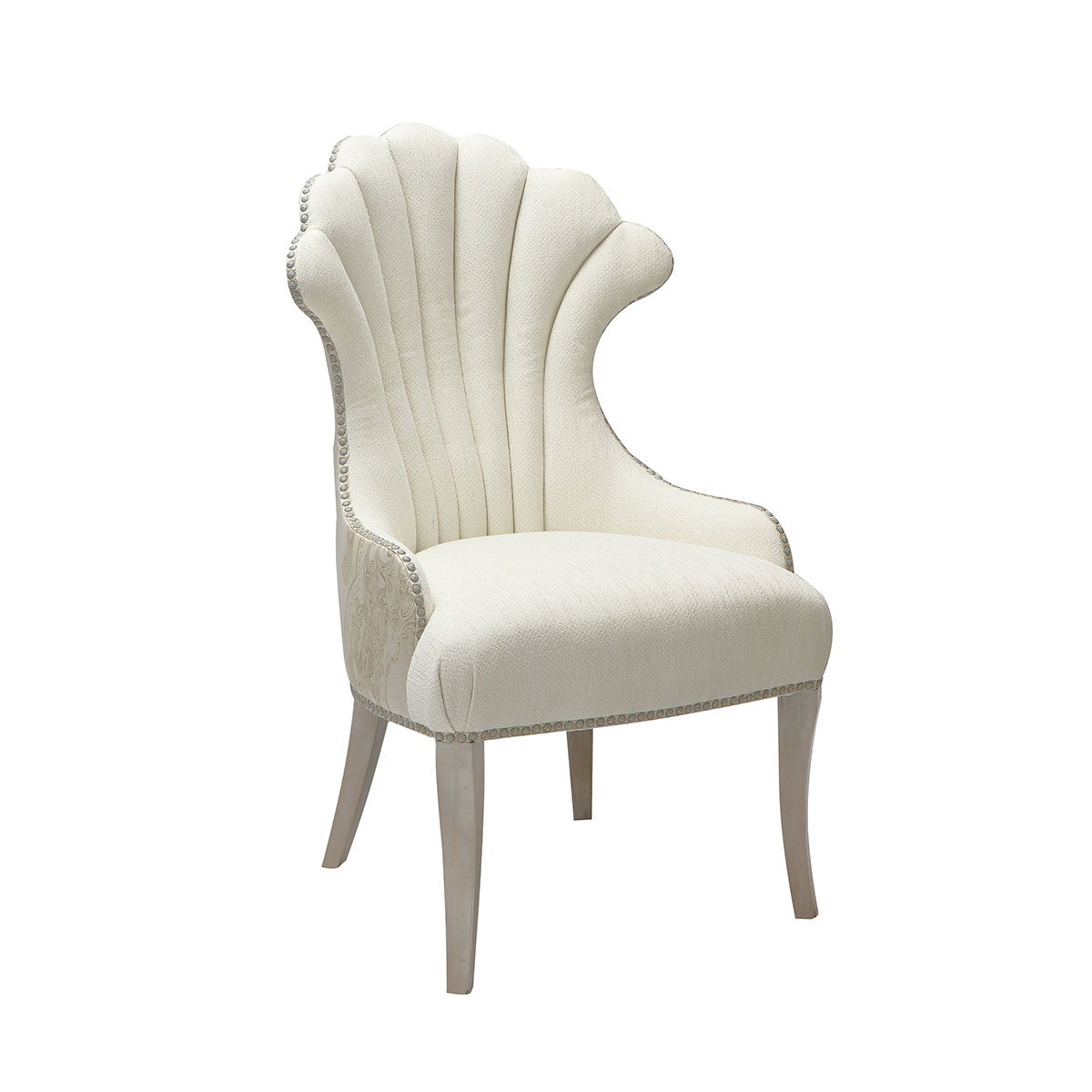 新古典主義去蕪存菁,貝殼狀的椅子富有東方女性的典雅美,造型開放而包容;錢貝圖騰元素,寓意財運源源。將洛可可風(fēng)格中對自然的表達(dá)、動感的弧線和雕刻、貝殼等工藝運用得融會貫通。