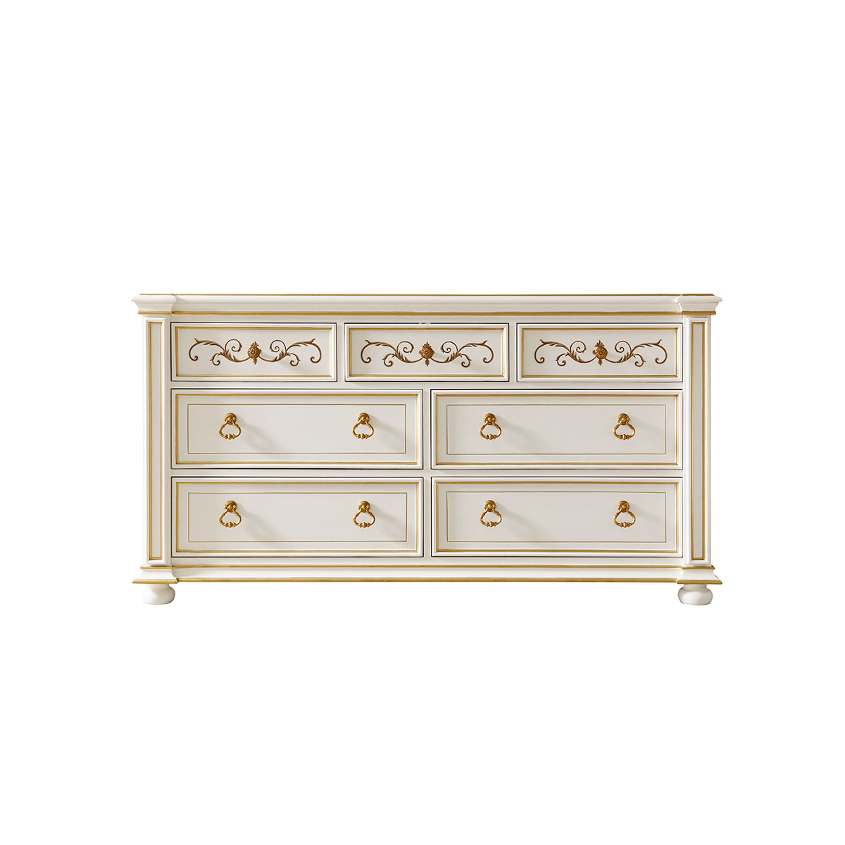 以意大利美麗而古老的城市維羅納為設計靈感,采用了清新動人的花草手繪與帶仿古效果的色澤痕跡,來表現(xiàn)出藝術家具獨特的氣質和內涵,配以閃耀的涂金工藝與古董白配色,精彩演繹了意大利人對奢華絢麗的寵愛。