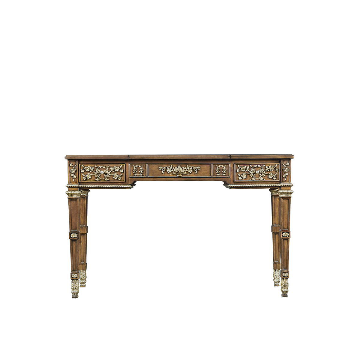 * 結(jié)實(shí)的連接技術(shù)以及描金的工藝 * 鏡子是鍍鋁鏡,始終保持鏡面清晰不會變形; * 三個儲物抽斗,其底部采用硬木實(shí)木滑軌; * 腳底部裝有可調(diào)腳釘;