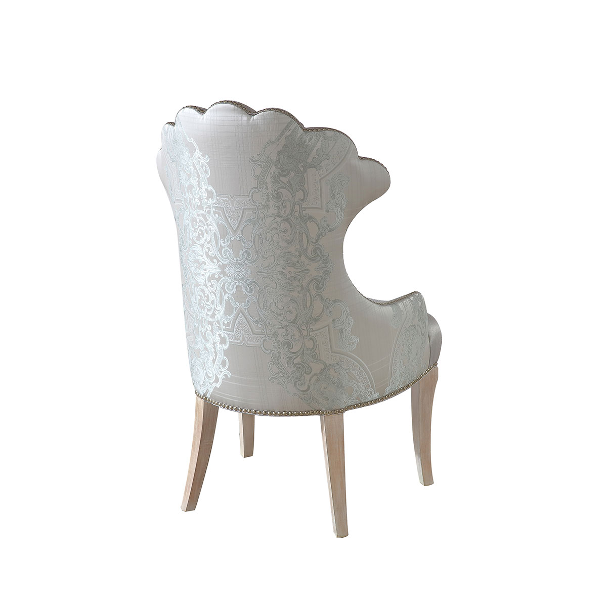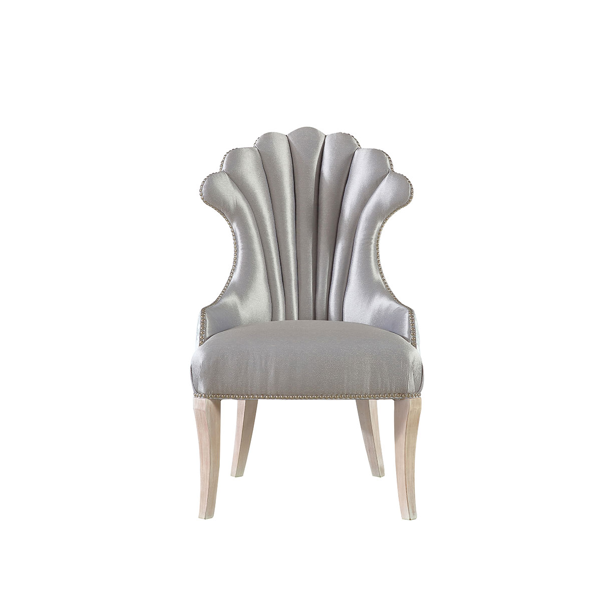 新古典主義去蕪存菁,貝殼狀的椅子富有東方女性的典雅美,造型開放而包容;錢貝圖騰元素,寓意財運源源。將洛可可風格中對自然的表達、動感的弧線和雕刻、貝殼等工藝運用得融會貫通。