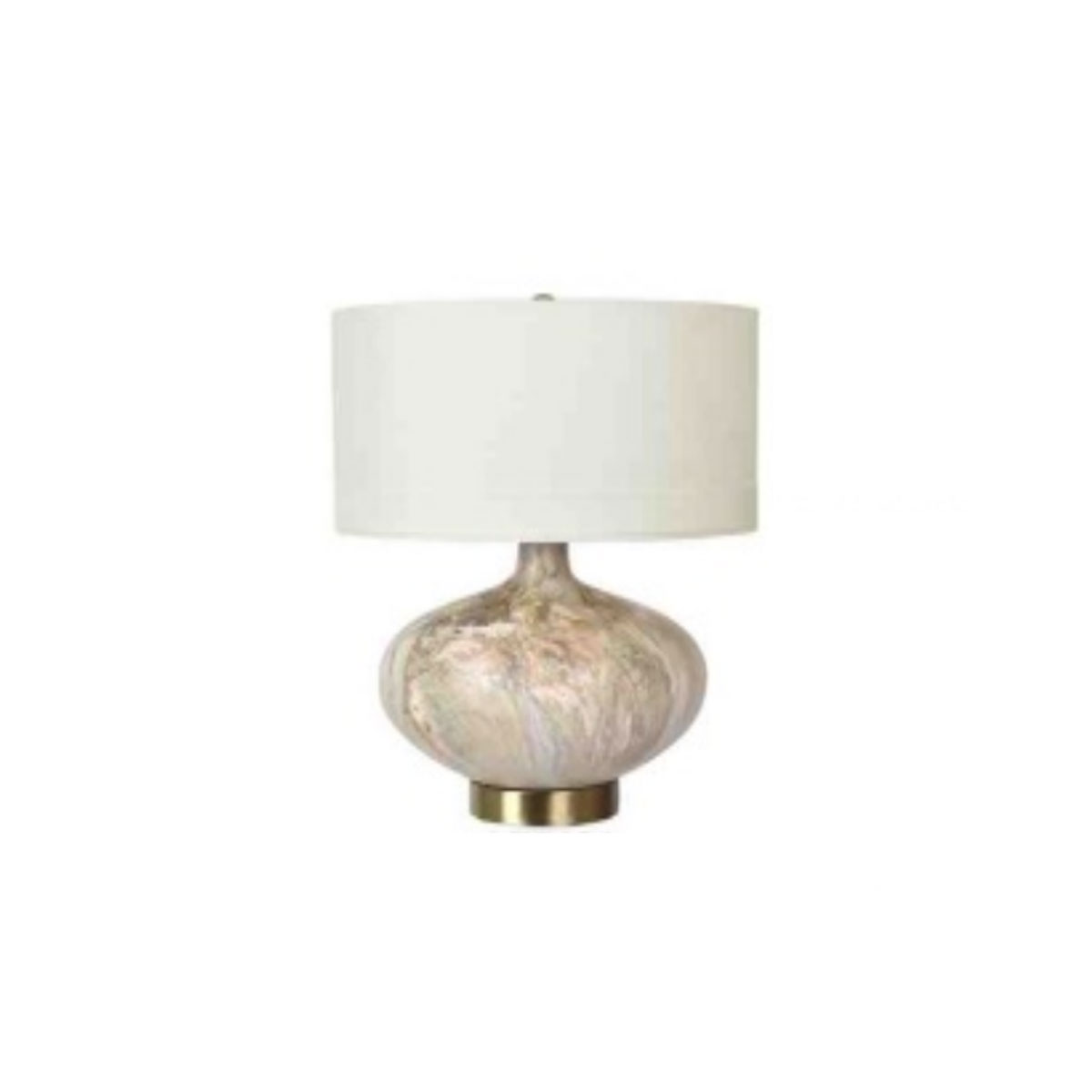 Sumner Table Lamp 27.5"Ht.,Ceramic & Metal Pistachio & Soft Brass Finish 16 x 16 x 11 off White Linen Drum Shade