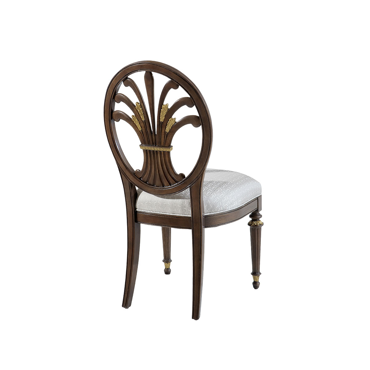 * 以意大利的宮廷家具和羅馬的古建筑為元素,使用錐形的腿腳設計、精致的手工雕刻細節和描金工藝結合,顯示王權的穩固地位;配以對稱的棕櫚葉和麥穗雕刻裝飾椅背、色彩豐富的布藝面料和厚實柔軟的填充物是豪華系列翡冷翠 意式單椅的特色。