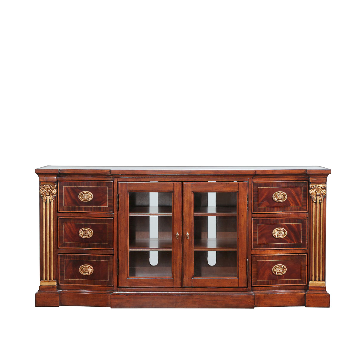 * 為表現英國皇室的華麗和莊嚴,以英國溫莎堡為設計元素。使用優雅的 Ionic Order(愛奧尼克式羅馬柱)雕刻,配上耀眼的貼金箔與精美的木皮貼面工藝,完美演繹了英式宮廷家具的奢華尊貴,可謂是極具典藏價值的傳世之作。
