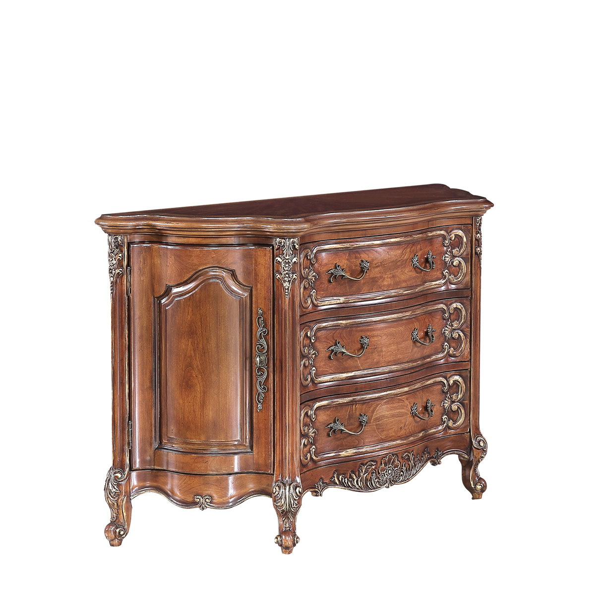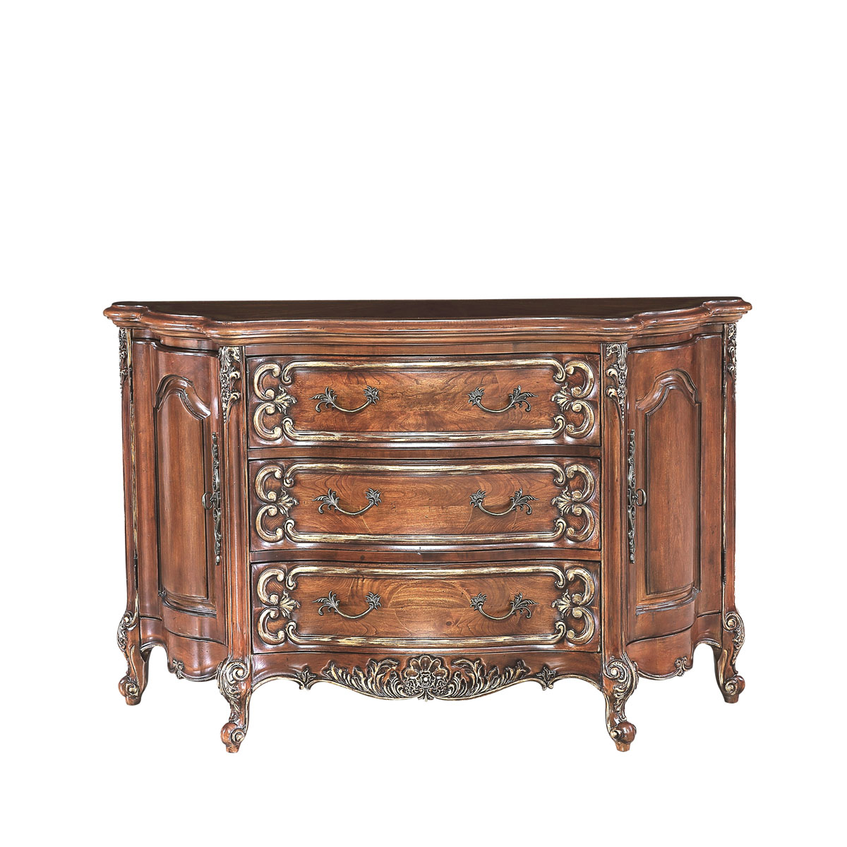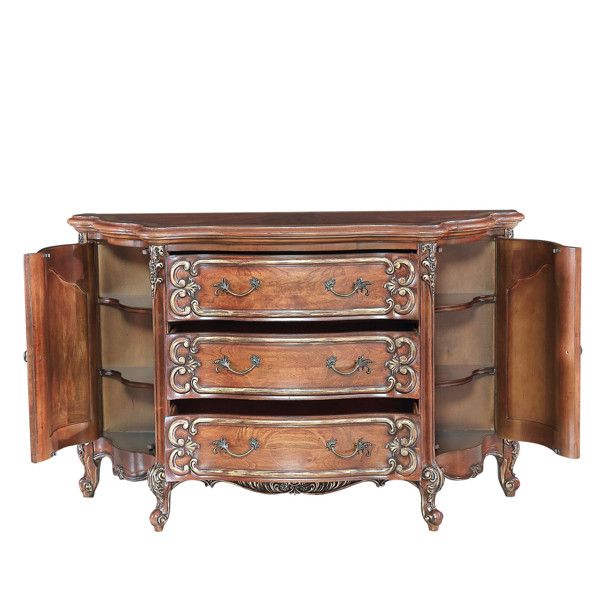 * 手工雕刻的花圃、藤蔓、阿坎瑟斯卷葉圖案和彎腳設(shè)計(jì) * 結(jié)實(shí)的連接技術(shù); * 三個(gè)儲(chǔ)物抽斗,其底部采用經(jīng)典硬木實(shí)木滑軌設(shè)計(jì); * 兩邊門內(nèi)各有三塊可調(diào)層板; * 底部裝可調(diào)腳釘;