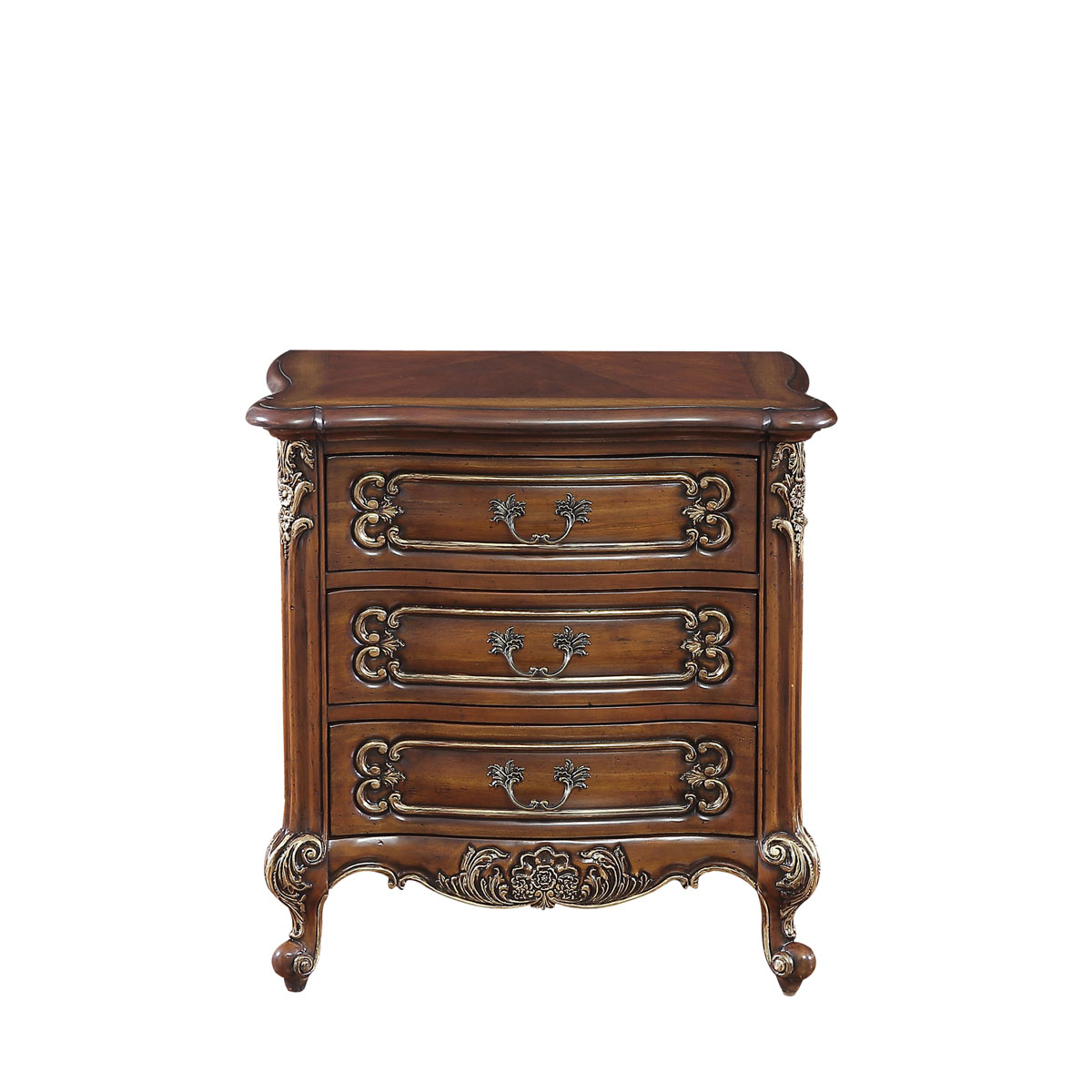 * 手工雕刻的花圃、藤蔓、阿坎瑟斯卷葉圖案和彎腳設計; * 結實的連接技術; * 三個儲物抽斗,并在其底部采用經典硬木實木滑軌設計; * 腳底部裝有可調腳釘;
