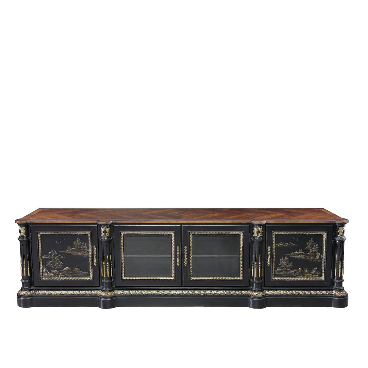 * 為表現(xiàn)法國(guó)路易時(shí)期的莊嚴(yán)和浪漫,以法國(guó)凡爾賽宮為設(shè)計(jì)元素。使用歌頌路易十四時(shí)期的太陽花雕刻,配以建筑柱雕刻與鉆石圖案實(shí)木薄片拼貼工藝,完美演繹了法式宮廷家具的奢華尊貴。