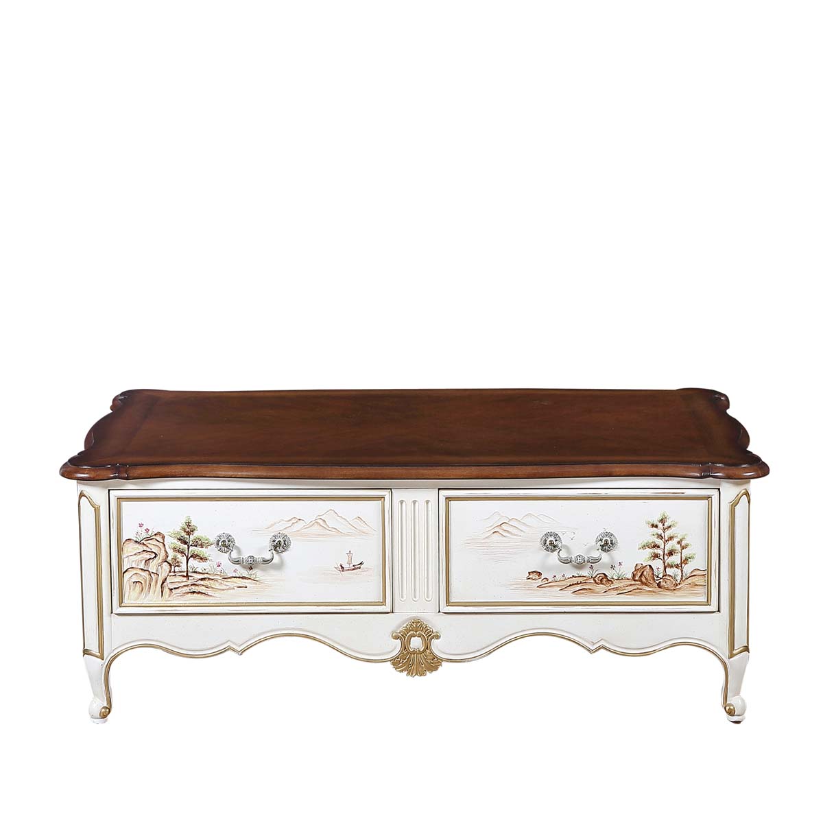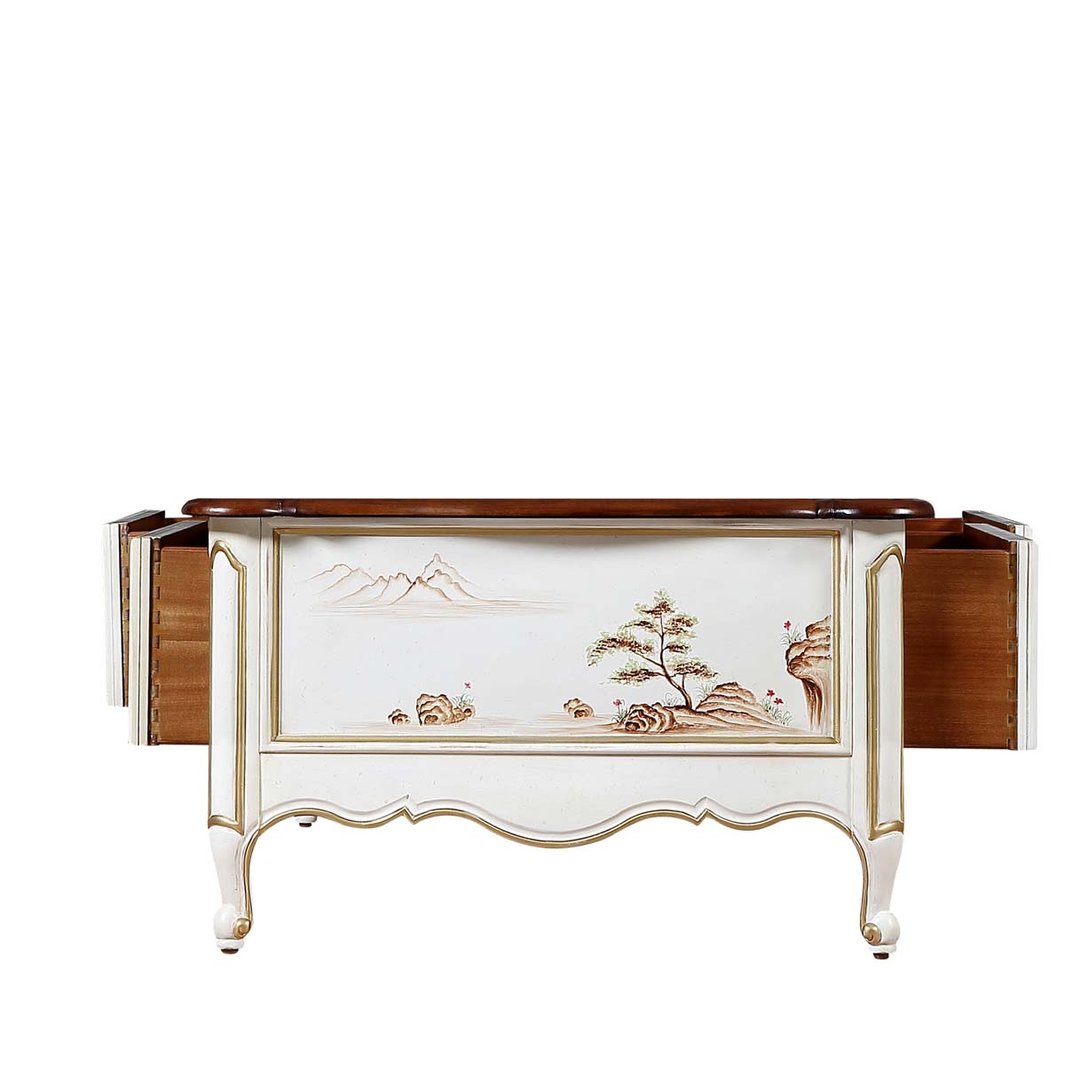 * 葉狀雕刻曲線的裙 * 四個儲物抽斗,其底部采用硬木實木滑軌; * 腳底部裝有可調整腳釘