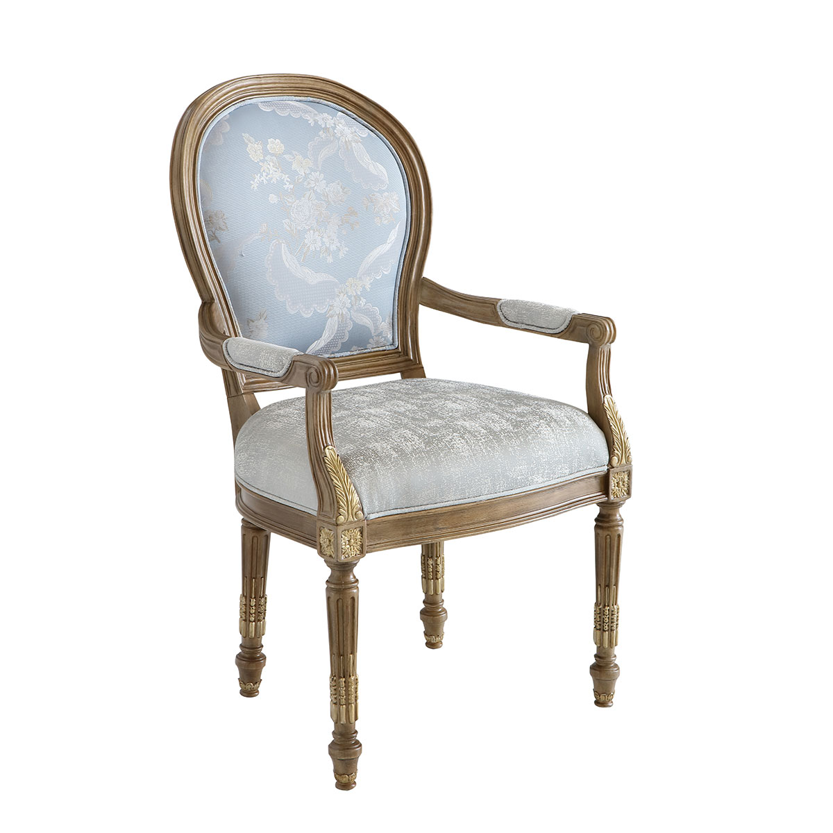 * 參考路易十六時(shí)期的古董造型設(shè)計(jì),使用小提琴構(gòu)造椅背和路易十六時(shí)期的建筑柱雕刻柱,配以精致的手工雕刻細(xì)節(jié)和涂金工藝、舒適的布藝面料和厚實(shí)柔軟的填充物,是豪華系列凡爾賽玫瑰法式扶手椅的特色。
