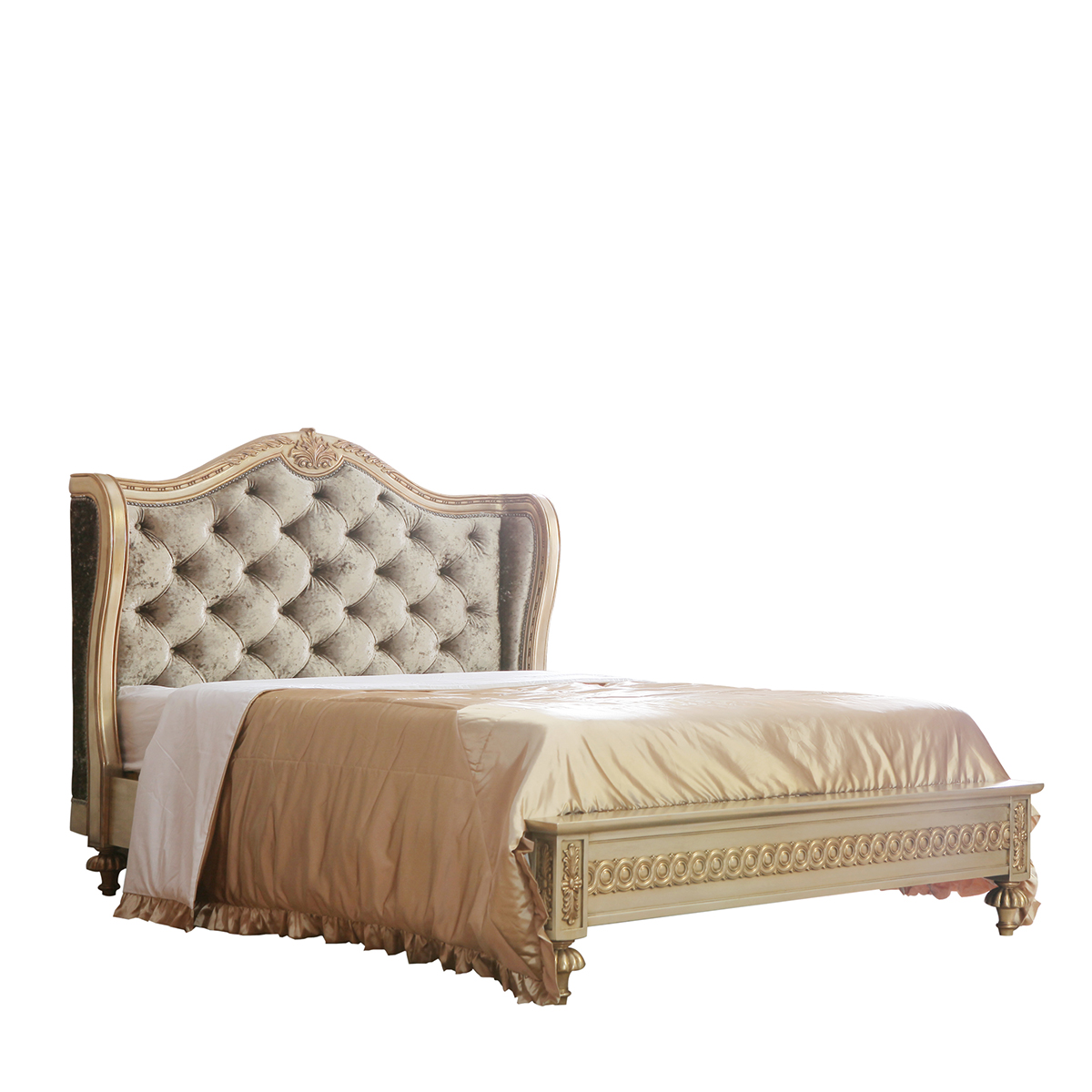* 延伸的床架布滿手工實木雕刻的花環,卷葉和網眼圖案 * 4只花形雕刻腳 * 共3種尺寸選擇可適用多種戶型 * 中間使用優質夾板鋪平,延長床墊的使用年限 * 床頭板包有豐厚的填充物 * 床頭板可提供多種面料可供選擇;