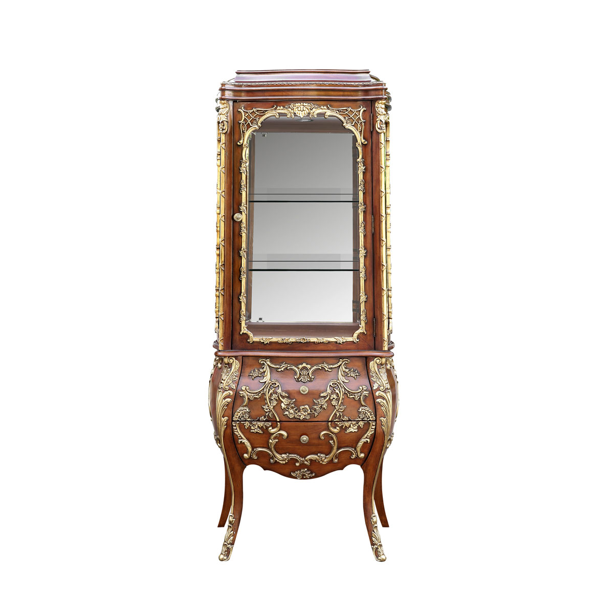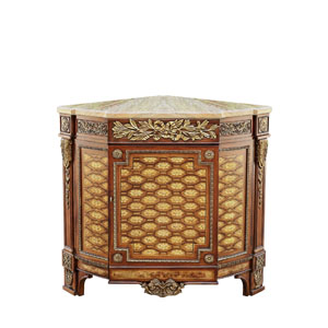 * 以 Louis XVI (路易十六)時(shí)期 Bombe Chest (邦貝柜)新古典風(fēng)格為設(shè)計(jì)靈感,華麗的曲線輪廓配以細(xì)膩的雕刻,呈現(xiàn)出法國(guó)宮廷的浪漫。猶如羅馬建筑般莊嚴(yán)的頂柜設(shè)計(jì),更是把新古典風(fēng)格的美表達(dá)得淋漓盡致。