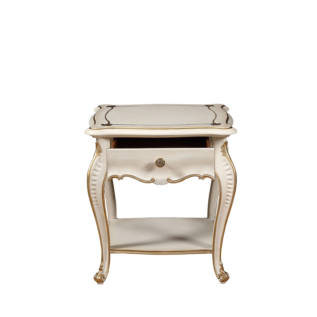 * 手工雕刻的工藝細節(jié)結實的連接技術18道以上的多步驟油漆工藝 * 一個儲物抽斗,其底部采用經(jīng)典的硬木實木滑軌 * 底部的層板可放置家庭裝飾品; * 腳可拆裝 * 底部裝有四個調整腳釘;