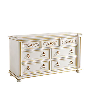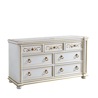 * 以意大利美麗而古老的城市維羅納為設計靈感,采用了清新動人的花草手繪與帶仿古效果的色澤痕跡,來表現出藝術家具獨特的氣質和內涵,配以閃耀的涂金工藝與古董白配色,精彩演繹了意大利人對奢華絢麗的寵愛。
