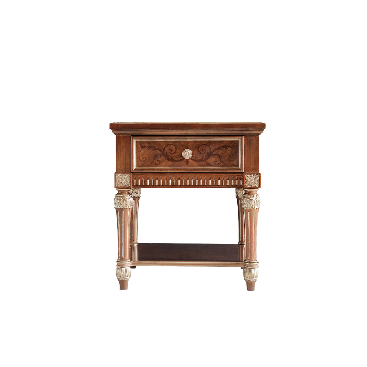* 手工雕刻的工藝細節結實的連接技術18道以上的多步驟油漆工藝; * 一個儲物抽斗,其底部采用經典的硬木實木滑軌 * 底部的層板可放置家庭裝飾品; * 腳可拆裝 * 底部裝有四個調整腳釘;