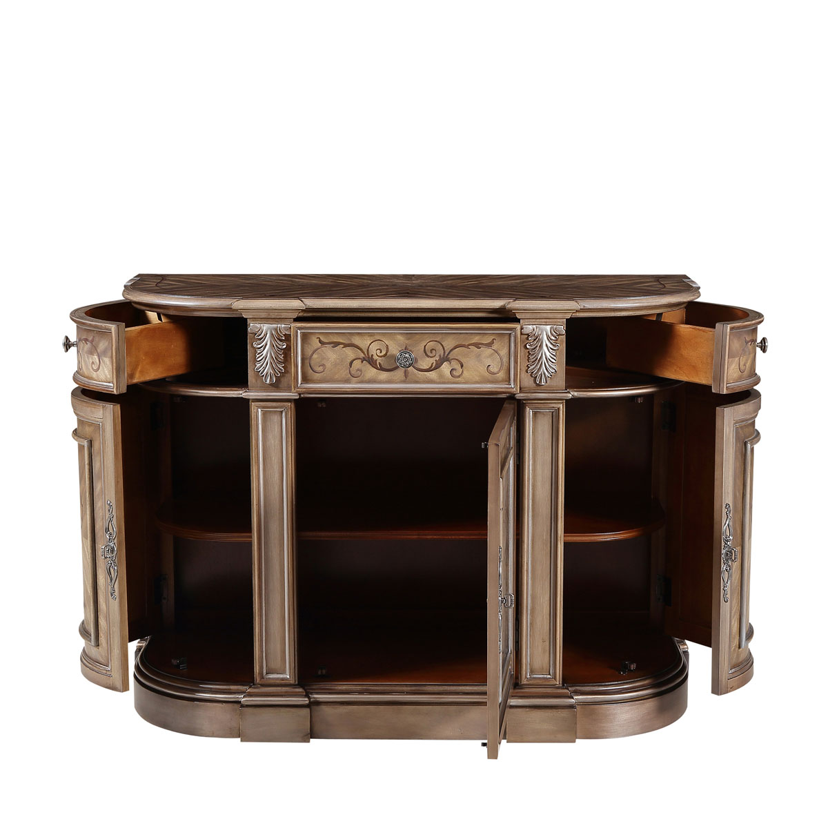 * 可作為臥室、餐廳、客廳或休息室的理想家具; * 三個(gè)儲(chǔ)物抽斗,底部采用硬木實(shí)木滑軌; * 三扇實(shí)木門板,門內(nèi)各有一塊可調(diào)層板; * 腳底部裝有可調(diào)腳釘;