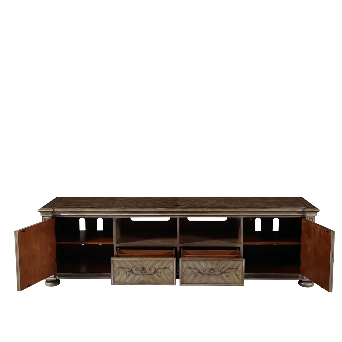* 中間兩個(gè)儲(chǔ)物抽斗配有CD/DVD隔板,可CD/DVD更好的存放,其底部采用經(jīng)典硬木實(shí)木滑軌設(shè)計(jì); * 兩扇門(mén)內(nèi)各有一塊可調(diào)層板;上部為開(kāi)空設(shè)計(jì),可在內(nèi)放播放器等電子器材; * 腳底部裝有可調(diào)腳釘;