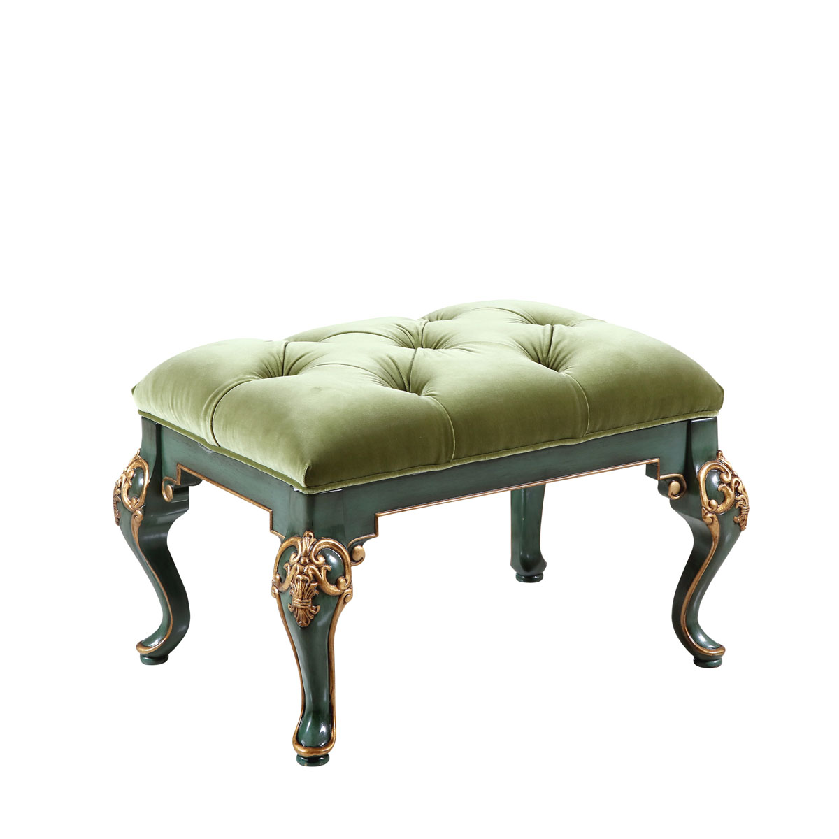 安妮皇后時期的S型彎腿,表現出流暢優雅的動態美感,高檔的布藝面料和厚實柔軟的填充物完美結合,賦予了這款梳妝凳極強的實用功能;富麗堂皇的卷葉雕刻在金箔貼飾的裝扮下,渲染出極致奢華的視覺震撼,這種裝飾手法一度是王室貴族的專屬。