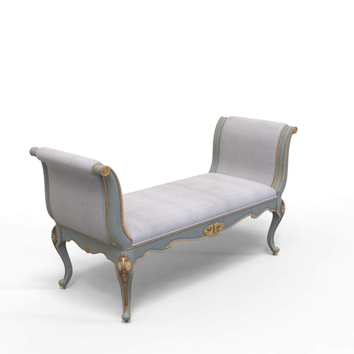 * 動感的S形腿與曲線扶手,搭配細膩多樣的手工雕刻,完美演繹了18世紀以意大利宮廷為中心的巴洛克風潮。放置在臥室,確是一抹華麗浪漫的風景線