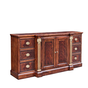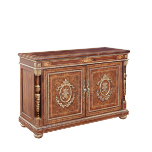 * 使用珍貴的材料拼貼而成的玫瑰花環(huán)、S形渦卷花紋和莨苕葉等裝飾,配以齊彭代爾式Chippendale獸抓球腳凸顯英國王室威儀,而金箔裝飾的卷葉雕刻怒放璀璨奢華,精心設(shè)計的小尺寸滿足所有戶型對貴族生活的鐘愛。