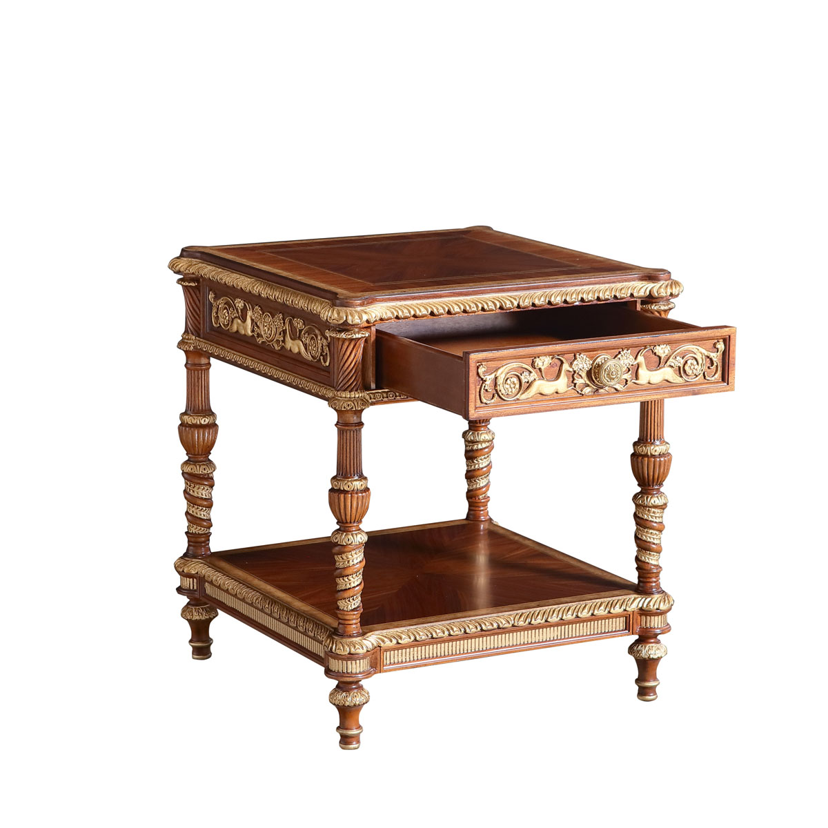 * 為表現(xiàn)英國(guó)皇室的華麗和莊嚴(yán),以英國(guó)溫莎堡為設(shè)計(jì)元素。使用復(fù)古的雕刻柱,來表達(dá)英國(guó)皇室的優(yōu)雅,配上精致的木皮貼面與工藝,完美演繹了英式宮廷家具的奢華尊貴。
