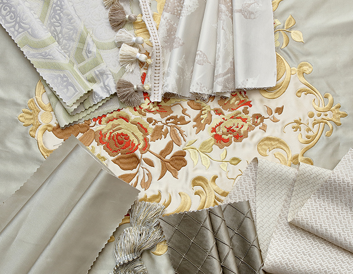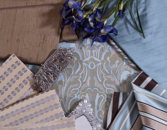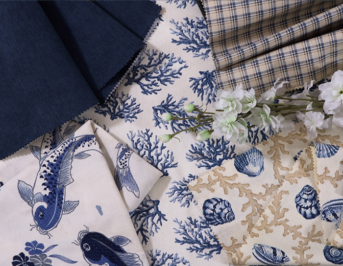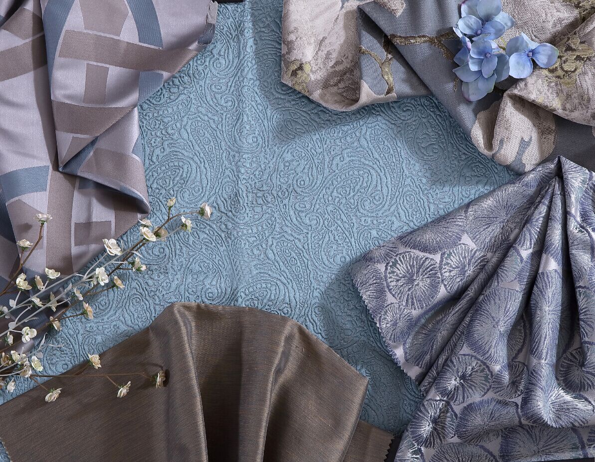 米白色調中加入適當比例的棕色,以天然的古樸抵抗歲月的痕跡;藍色刺繡提花栩栩如生,精致細膩中糅著典雅的矜持,承襲著悠久的傳統工藝,繡制華美藝術。