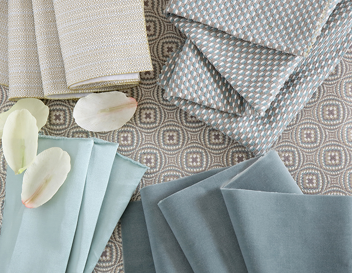 天空遠處那片淺藍與眼前的Tiffany藍交相輝映,高精密的繡花布藝,淡雅流光。