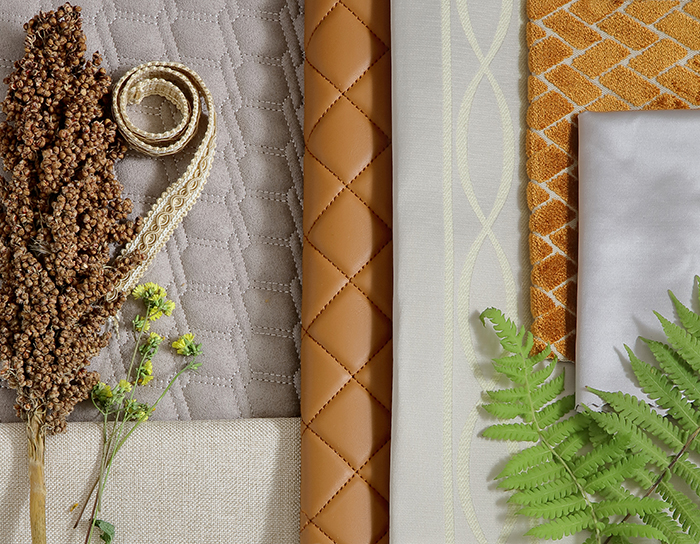 溫情的米色溢動著時尚風情,以花為媒,一花一葉間感受來自自然的馨香。回環纏繞的枝葉,舒展著優美姿態;化繁為簡,簡易布藝,引領精簡優質生活。